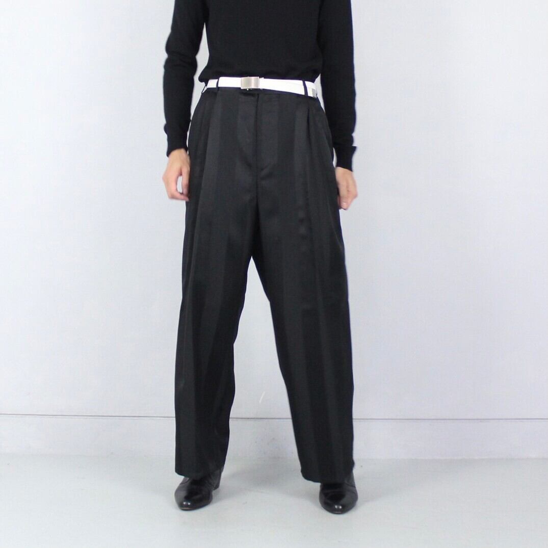 同色太めのシャドーストライプが全体にデザインされているスラックス