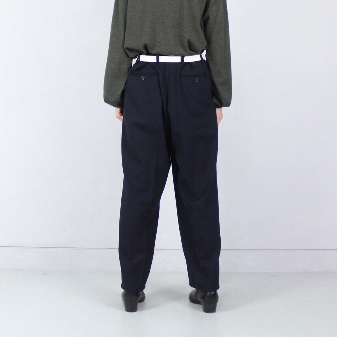 ウエスト周りに動きの出る2タックでモモからドッと落ちるワイドなシルエットのパンツ。