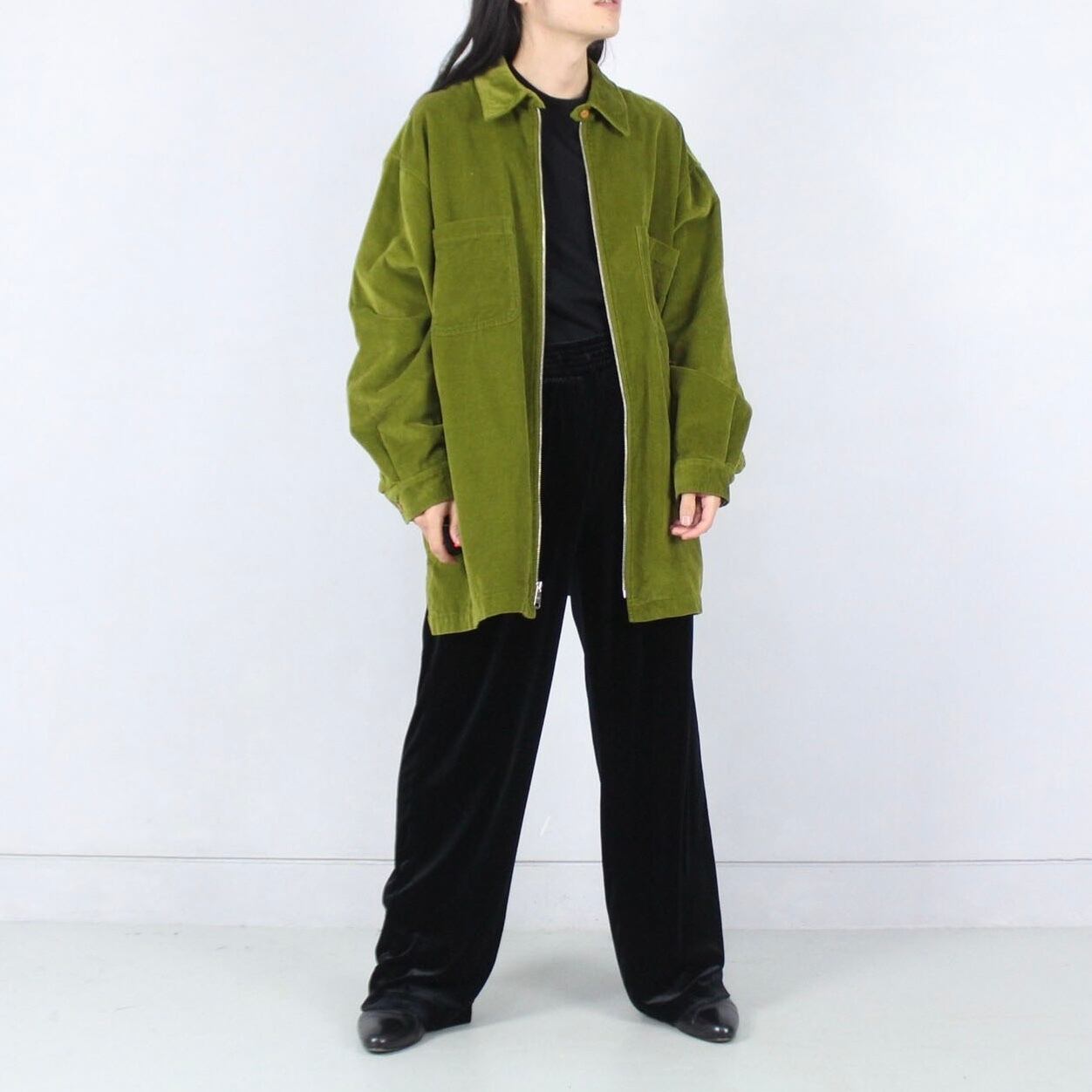 ベルベット グッドカラー◎ オーバーサイズ ワイドシルエット ジップアップ ジャケット 【OT-3482】