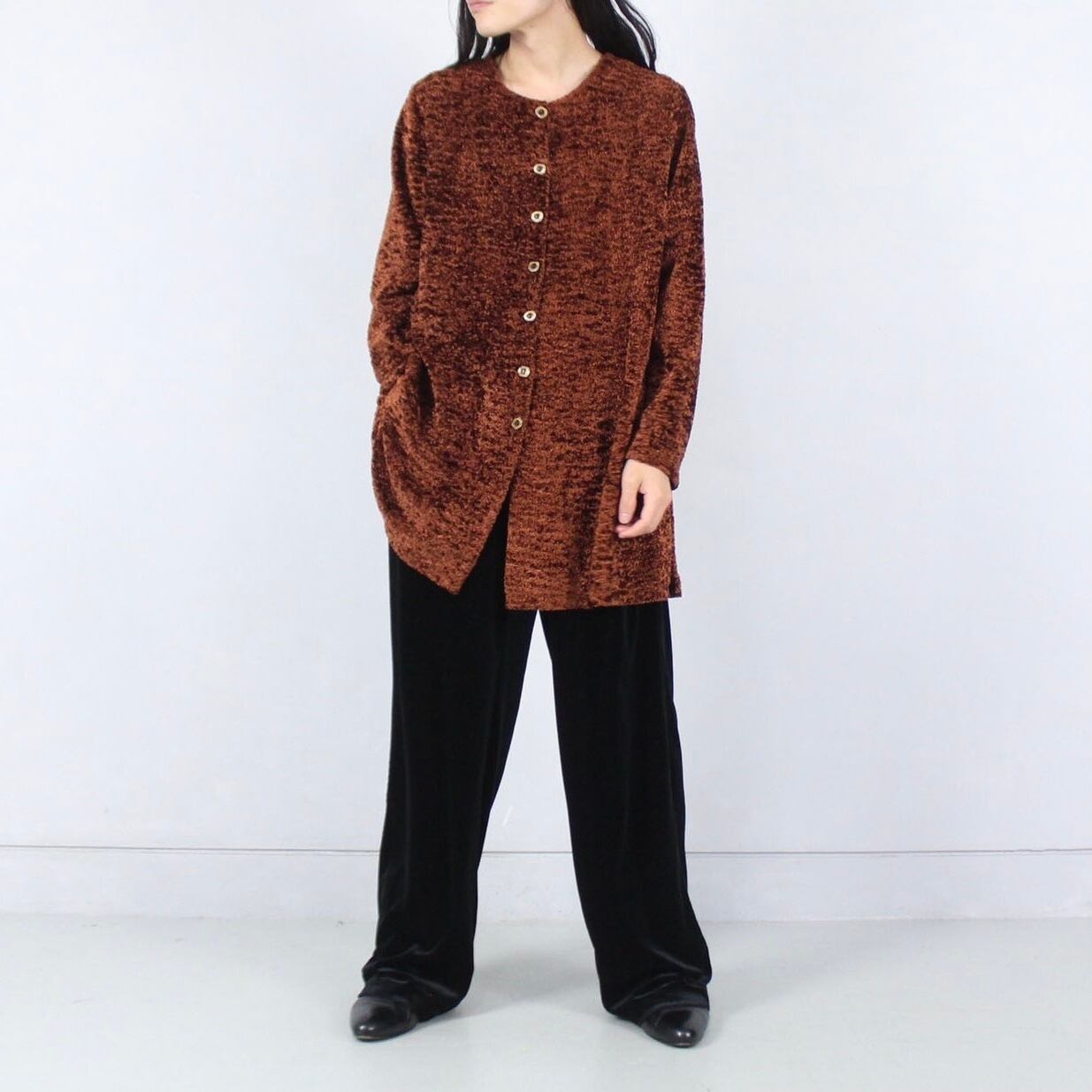 ベルベット レンガオレンジカラー ノーカラージャケット 【OT-3486】