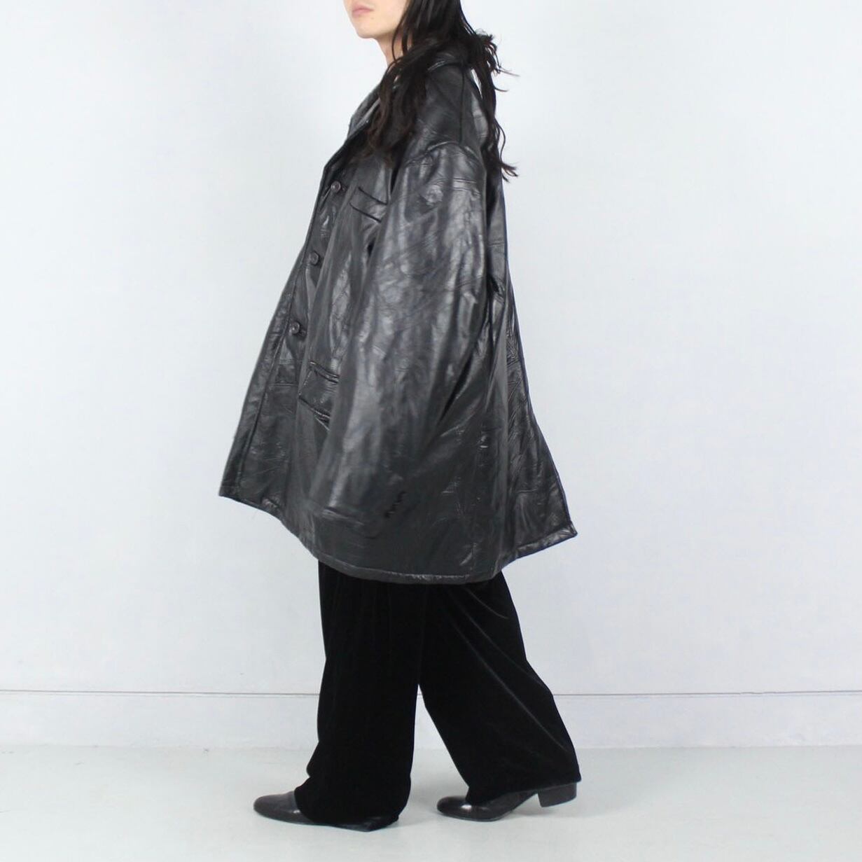 従来のレザーアウターの概念を一蹴するドレープ感を体現するアイテム。オーバーサイズのレザーアイテムでここまで着やすいのはこれ以外にあまり無いと思います。