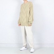 カラーリングもベージュで合わせやすく今時期だと定番色やアース系の色味と相性抜群。サイズ感もXLでゆるっと着やすい。身幅が広いボックスシルエットがどんなパンツにも◎