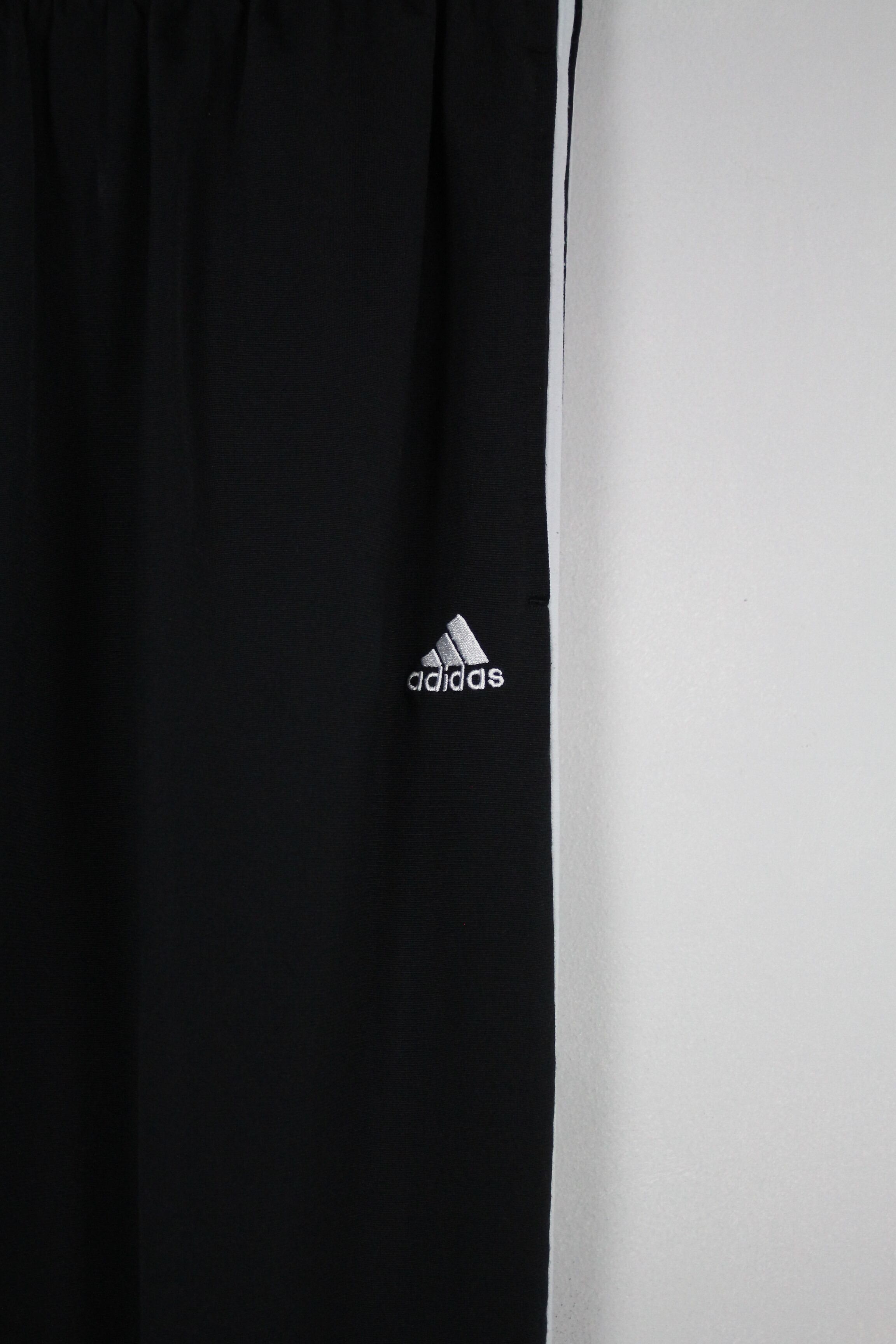 ブラック×ホワイトのカラーリングでサイドにはお馴染みの3本ラインが配置されデザイン性も問題ないです。シルエットもワイド。レングスもすっきりとドカンシルエットが楽しめる逸品。是非。