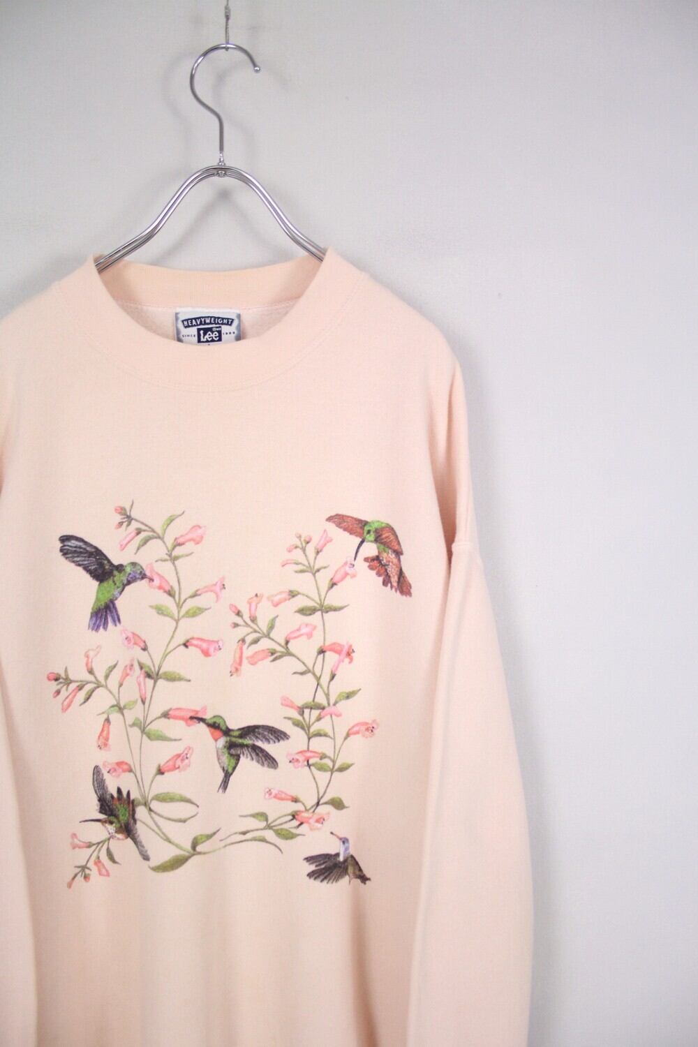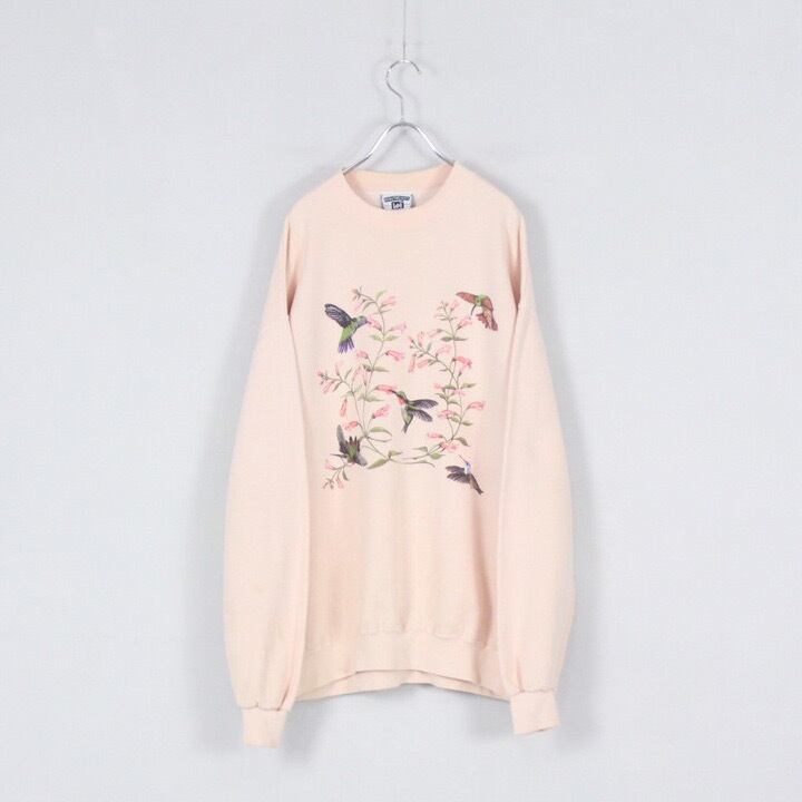 1990’s Lee フラワー&バード プリント スウェットトレーナー サーモンピンク 【FF-4508】