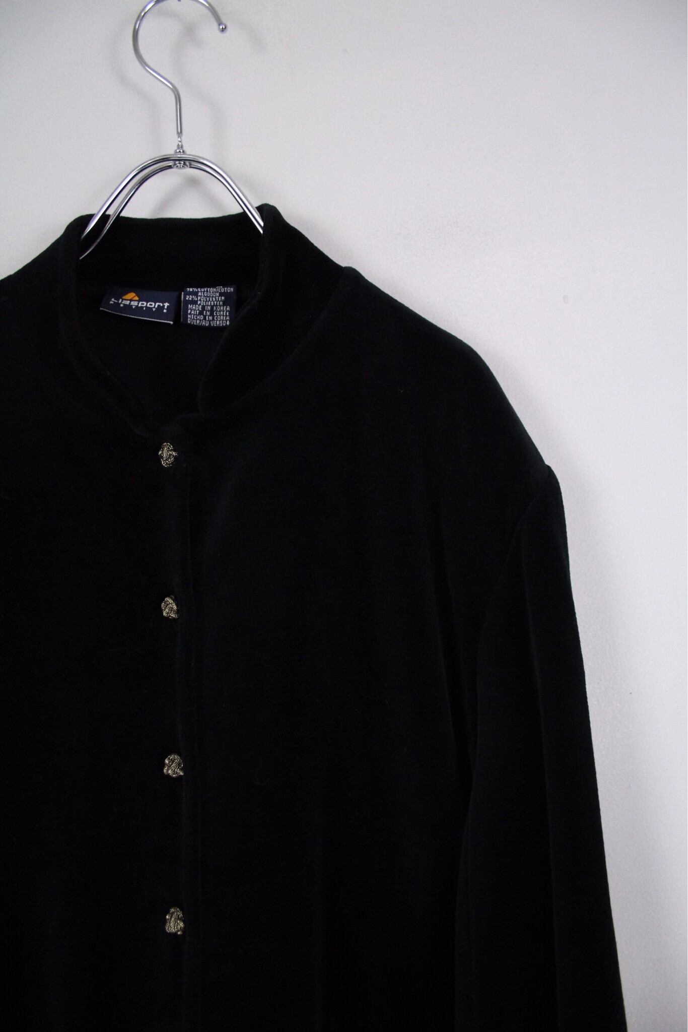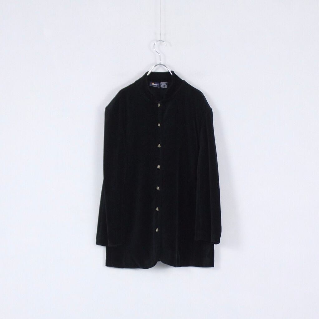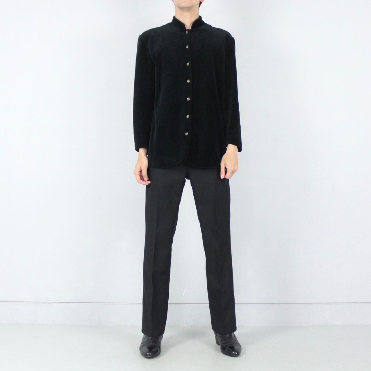 チャイナデザイン ブラックベルベット スタンドカラージャケット【CO-1524】