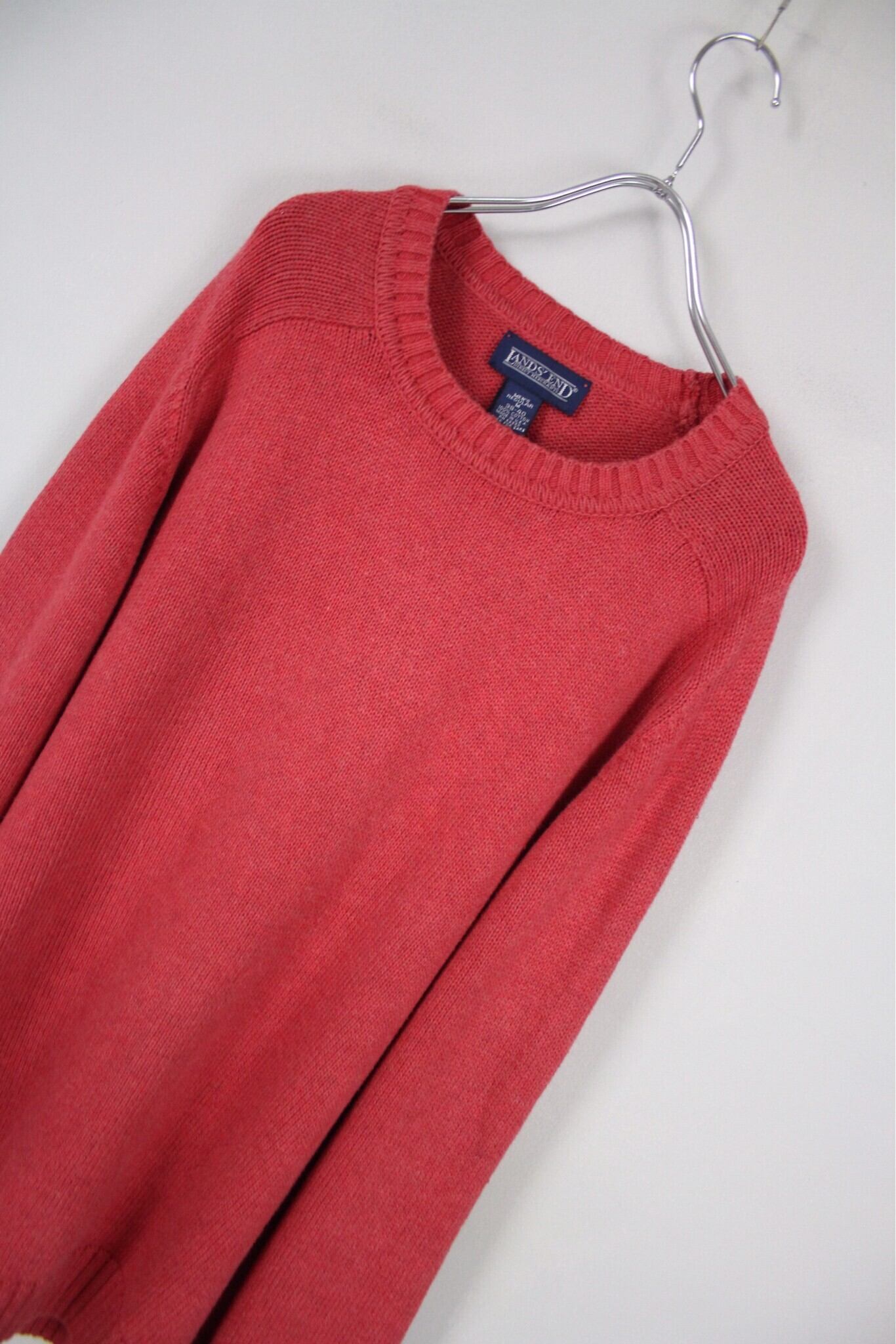 コーラルピンクカラー クルーネック コットンニットセーター Made In USA【FF-4597】