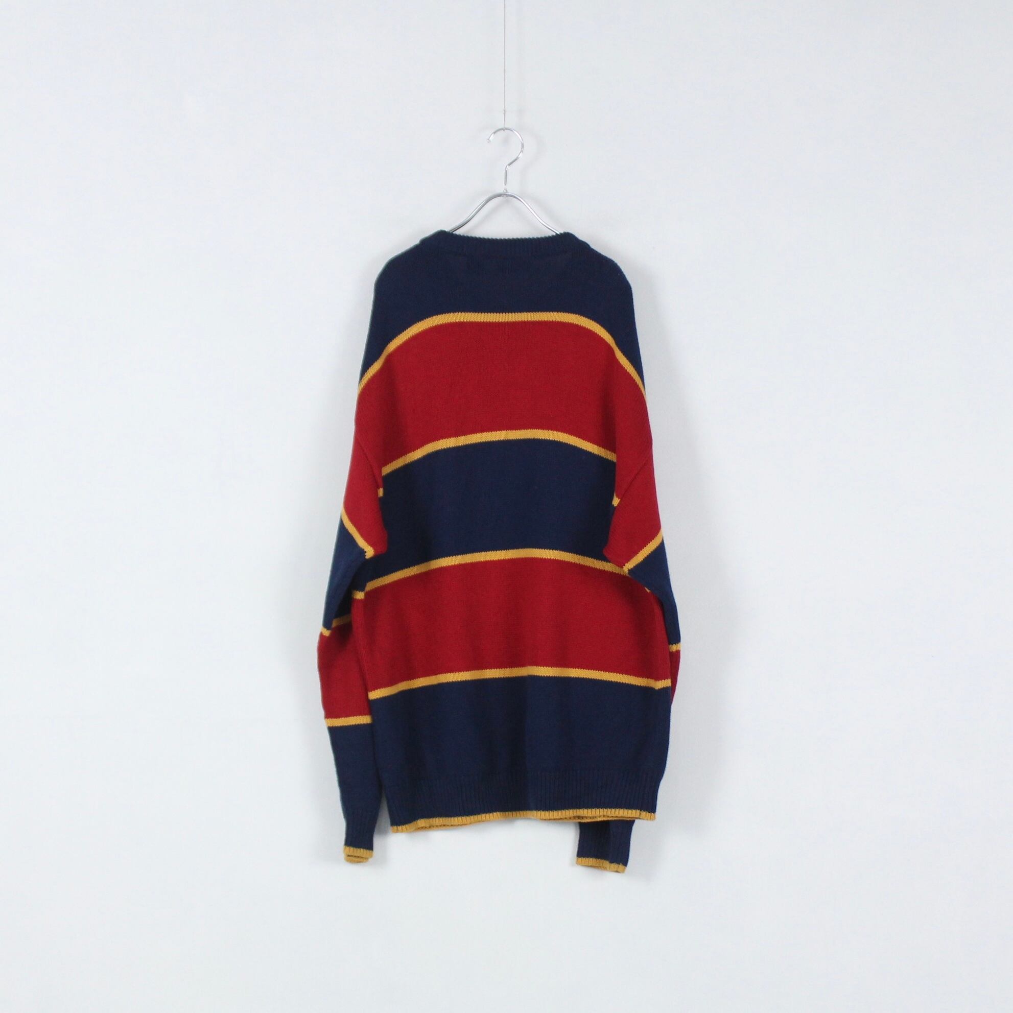 太めレッドとネイビーのファットボーダーにイエローが映える"イイ"3トーンボーダーニット