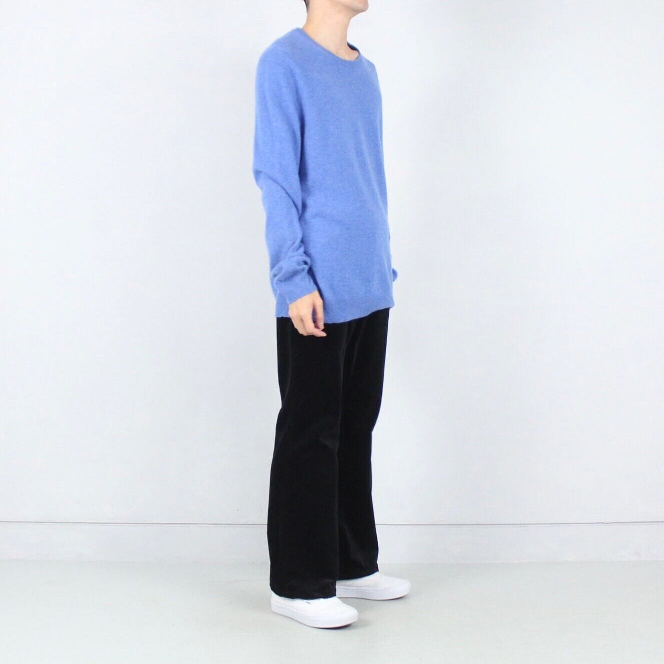 サックスブルーカラー とろみ 100%カシミヤ クルーネックニットセーター【FF-4614】