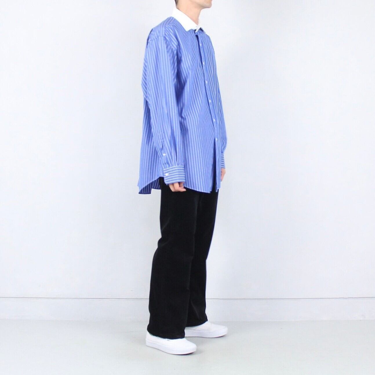 こちらは少しフォーマルなモデルで、襟はボタンダウンではなくドレス仕様、胸元にもポニーロゴが入りません。この手のラルフローレンのシャツでも数が少ない珍しいモデル。年々球数が少なくなっており価値が上がってきているアイテムです。
