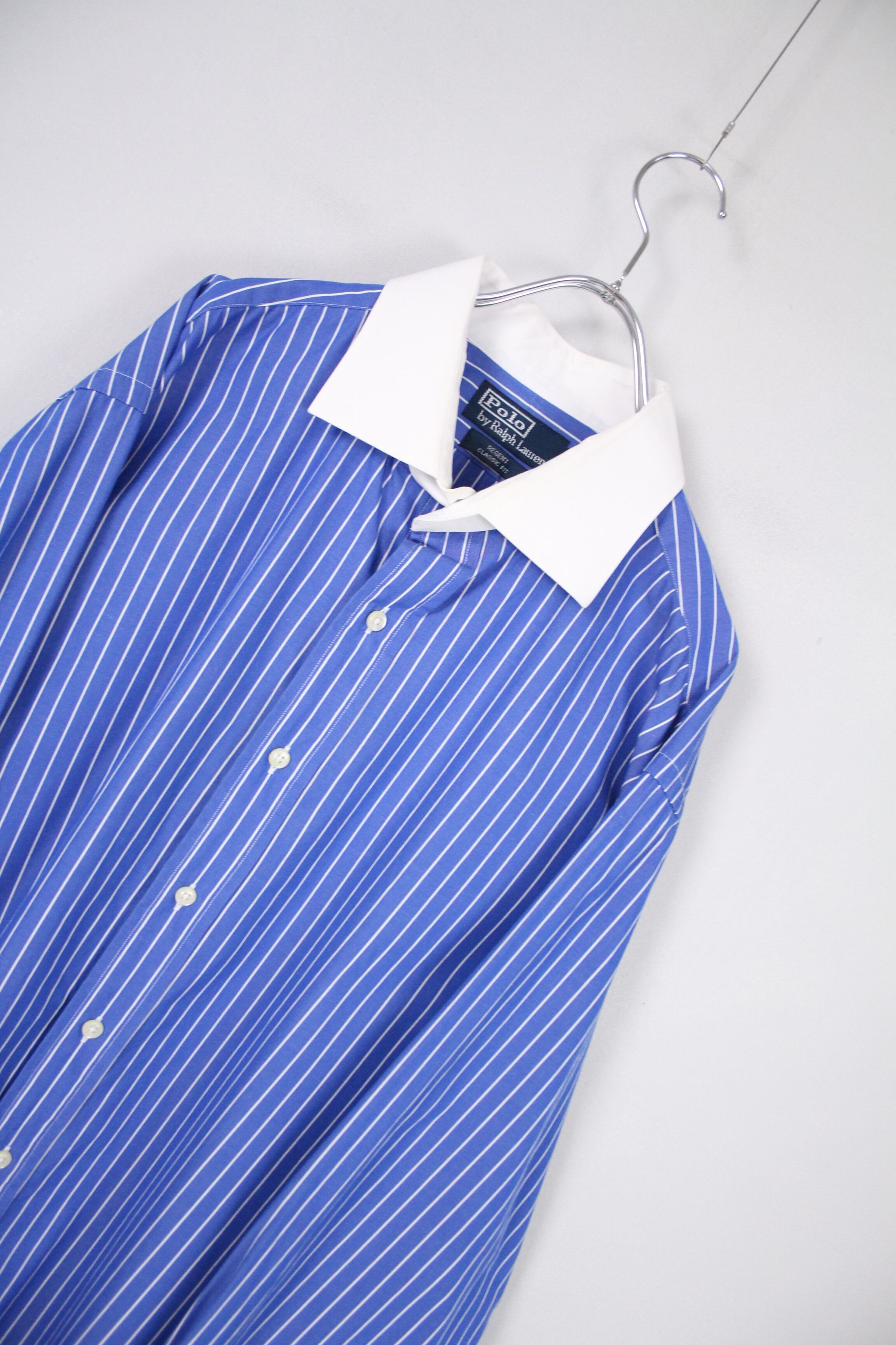 Polo by Ralph Lauren ストライプ クレリックドレスシャツ ブルー×ホワイト 【FF-4616】