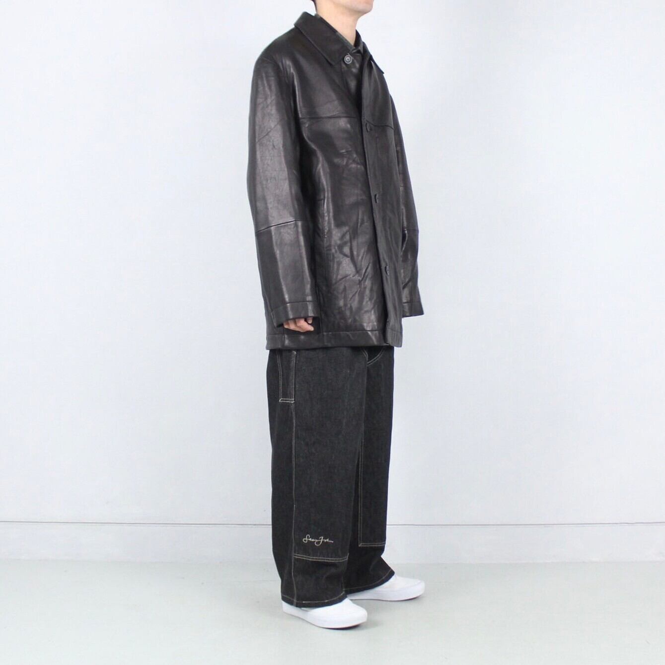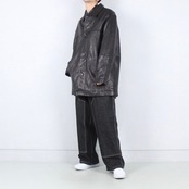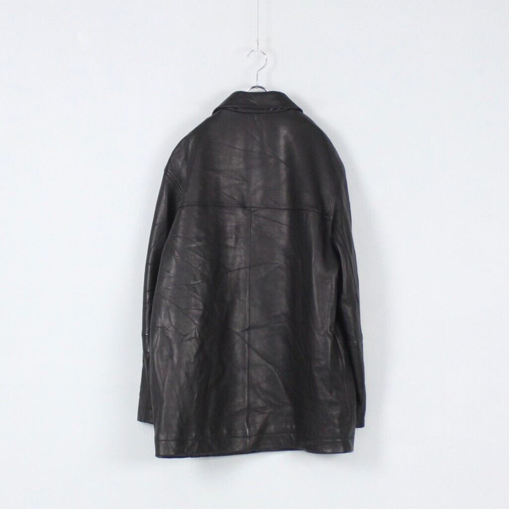 こちらもモチモチの柔らかなファブリック。今旬なシルエットでさらっと羽織りやすくクオリティも高いレザーです。