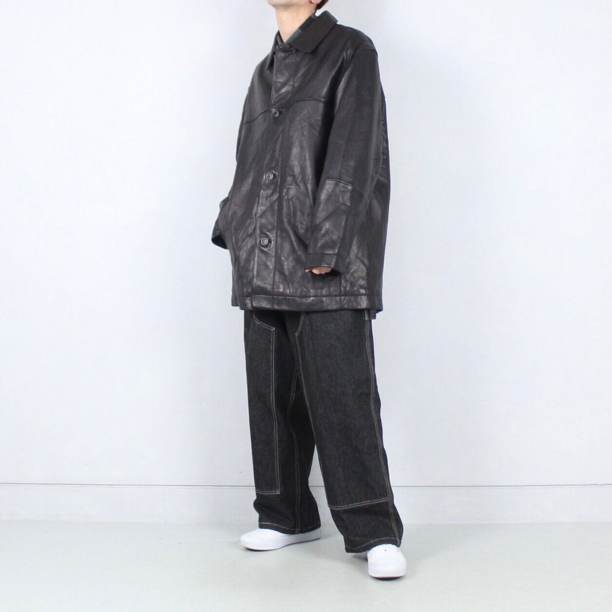 オーバーサイズ モチモチ ブラックレザーカバーオール【FF-4633】