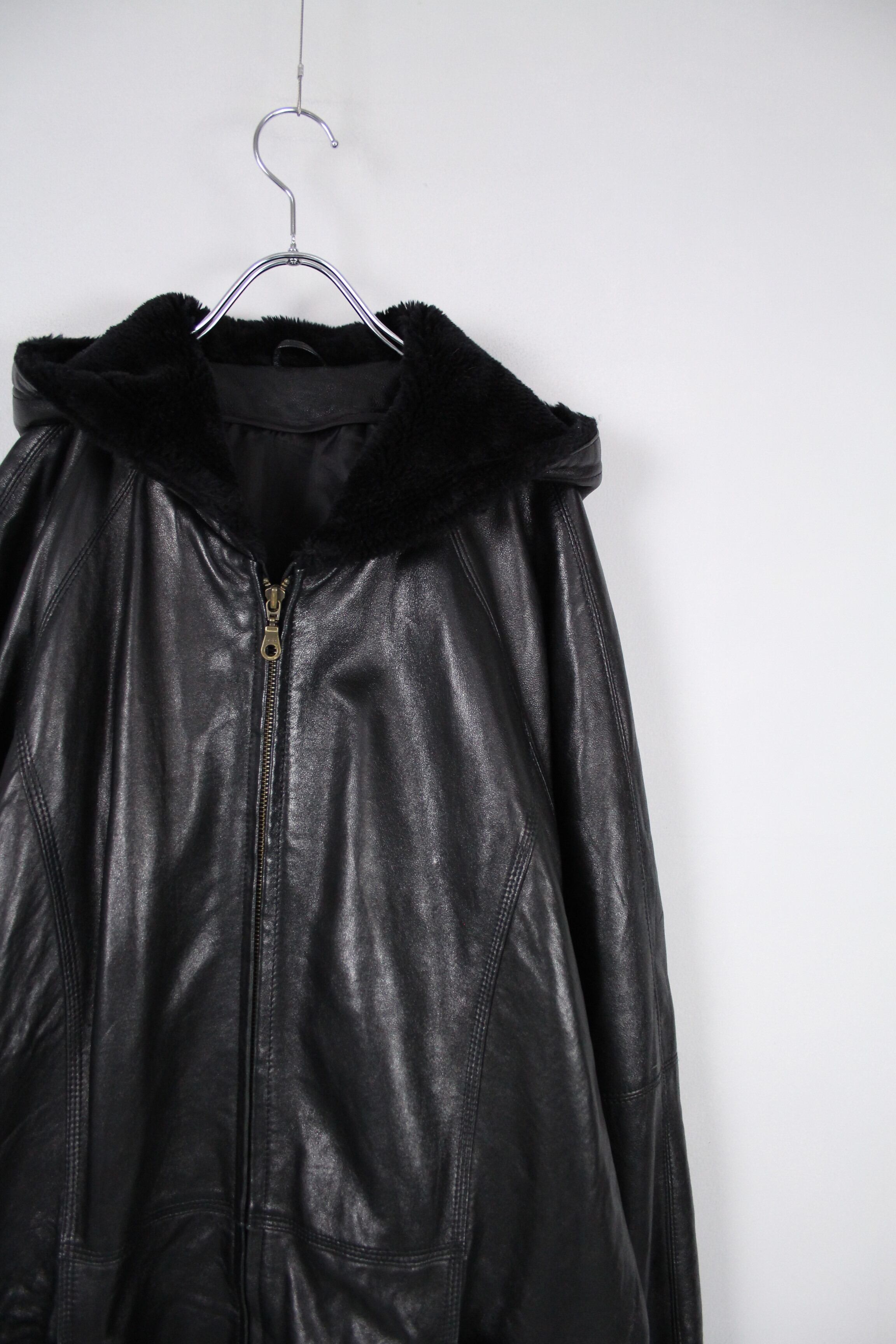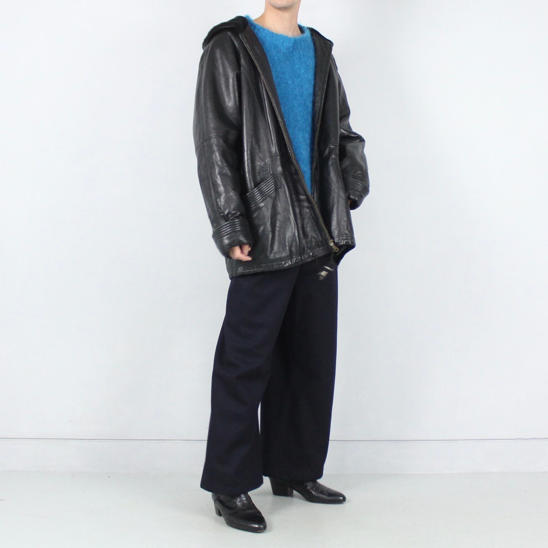 当店らしいもちもちとしたレザーにラグランスリーブ。しっかり肩から落ちる今風なシルエットが出るレザーは探すとない。