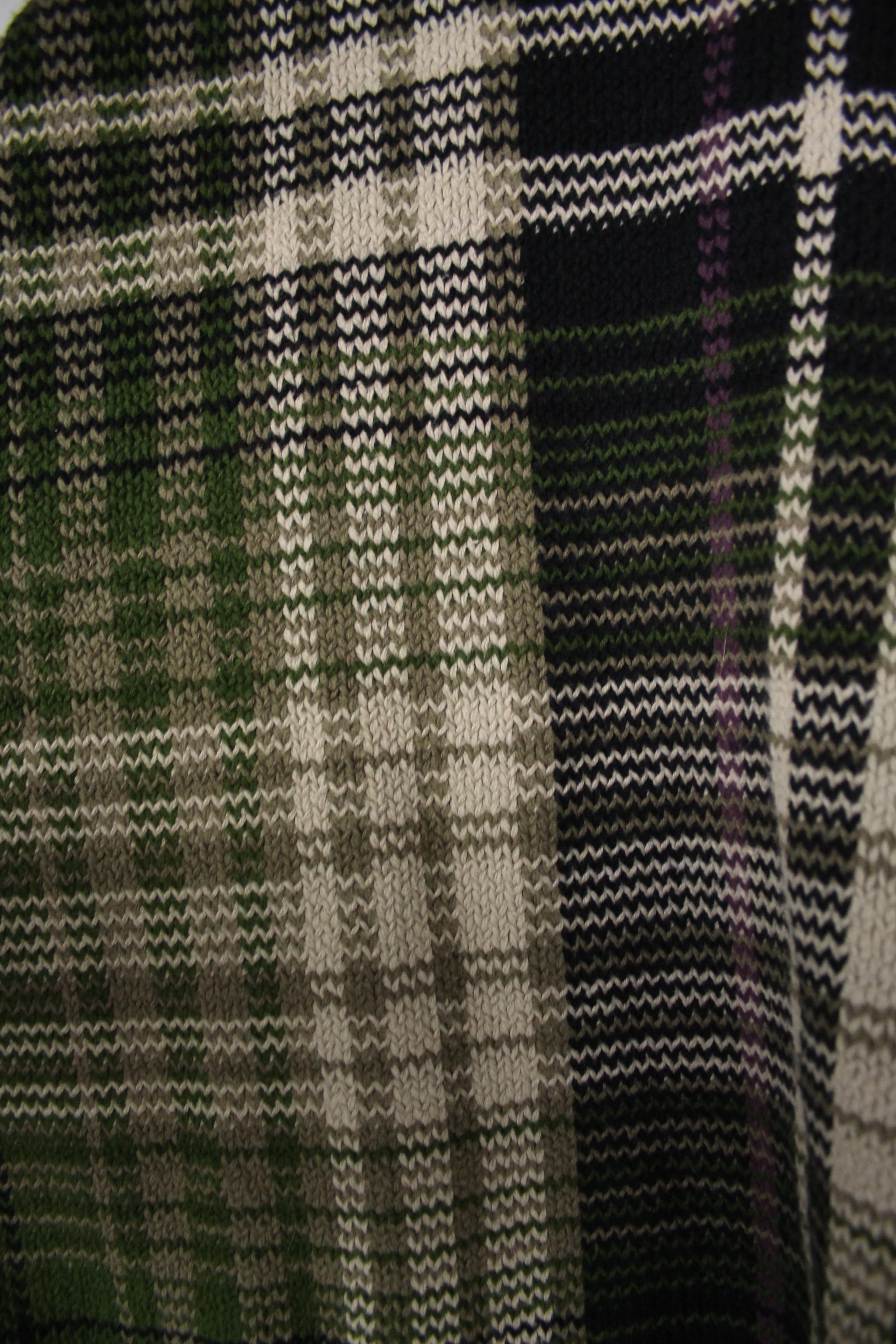 マドラスチェック オリーブ×ベージュ×ブラック 総柄コットンニットカーディガン【FF-4648】