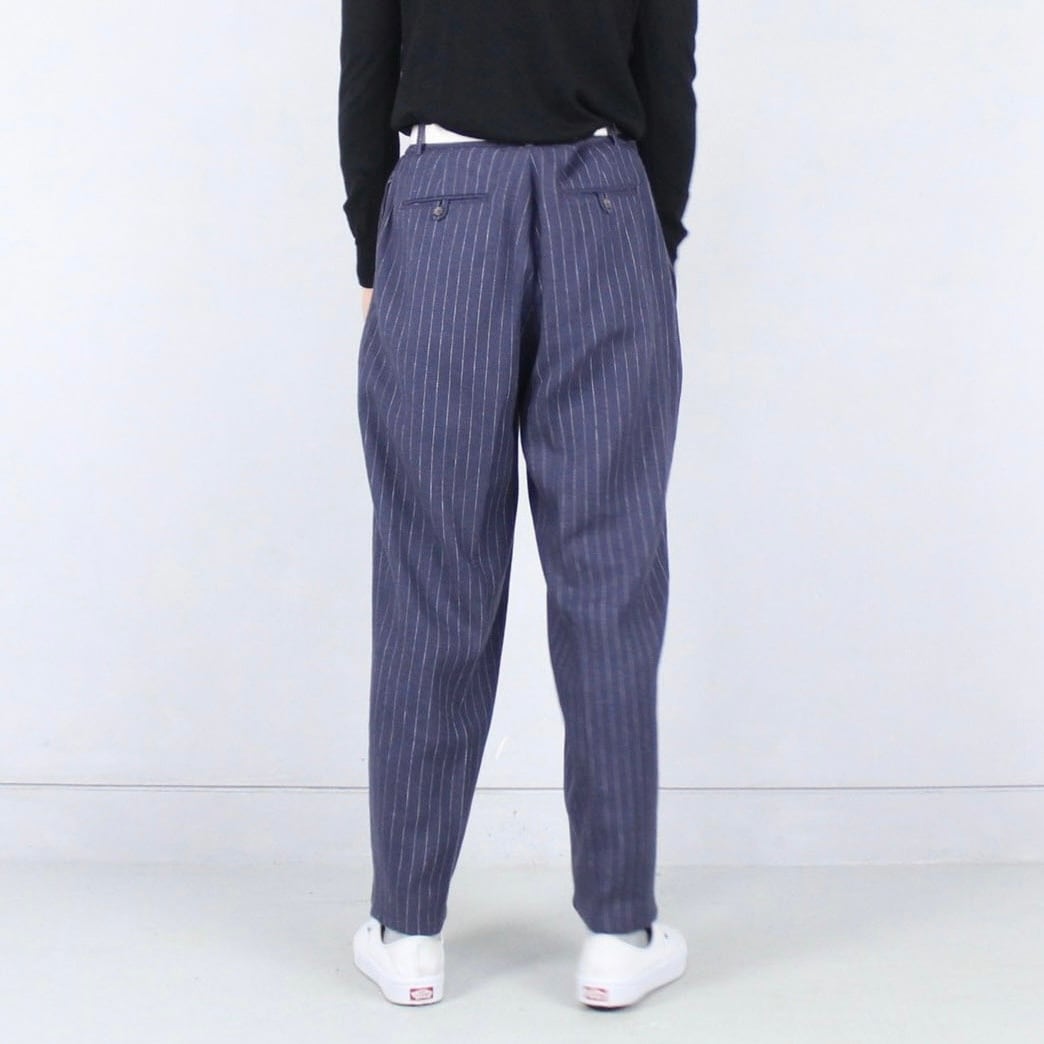 2タック入りで上品。ワイドテーパードの太めのシルエットが今時期のトップス(ニット、カーディガン等)にも合わせやすいですね。
