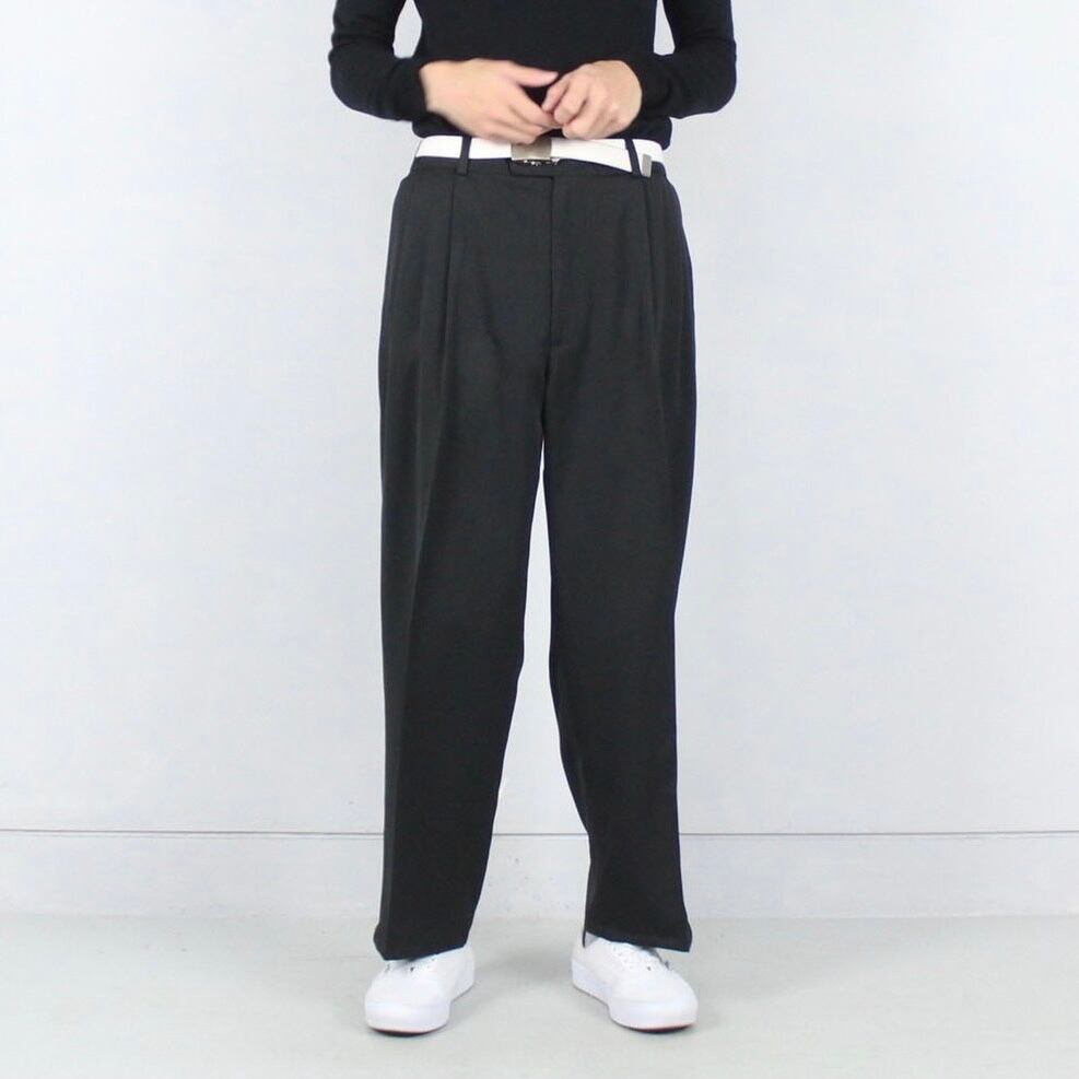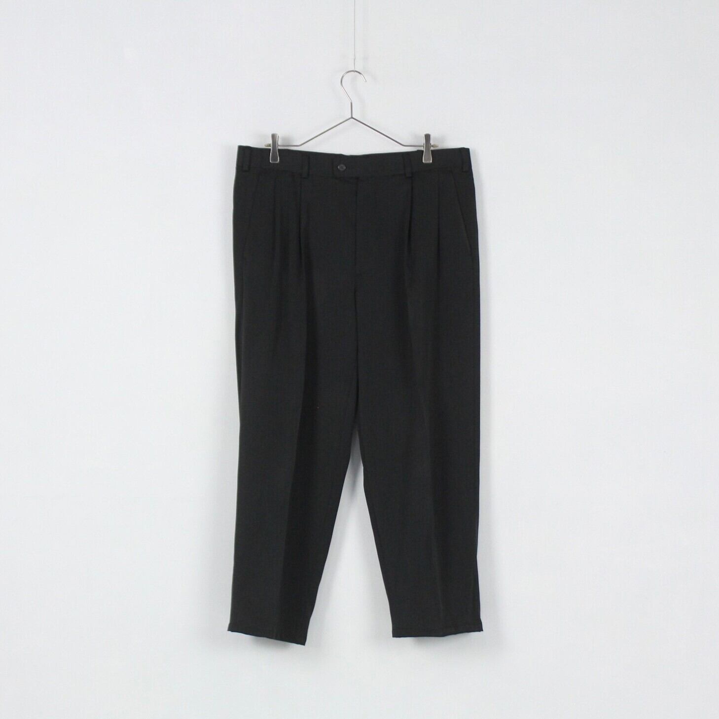 PERRY ELLIS ブラックカラー とろみ 2タックワイドスラックス【FF-4660】