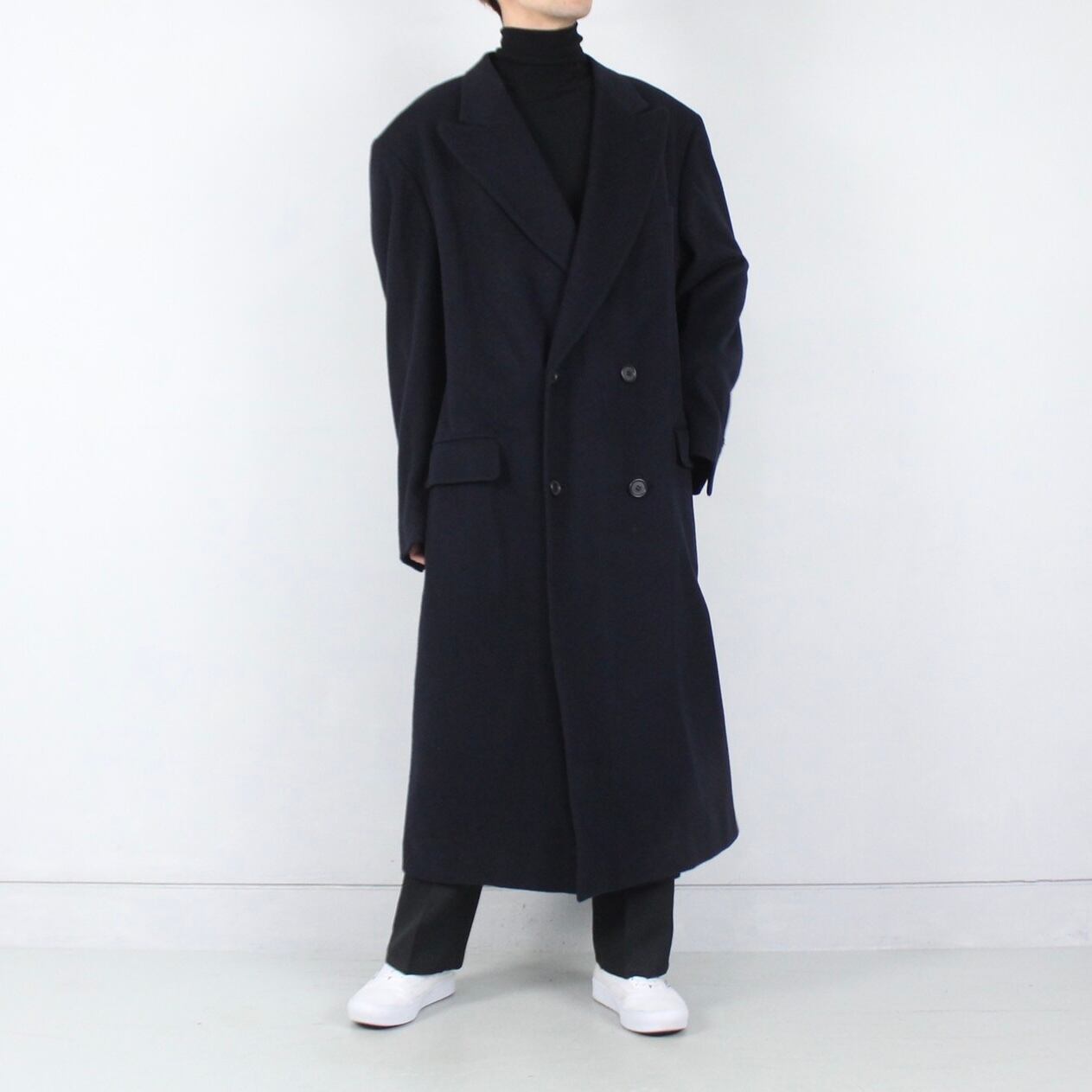 クラシカルなダブルのチェスターコートですが今っぽいシルエットで着用できる逸品