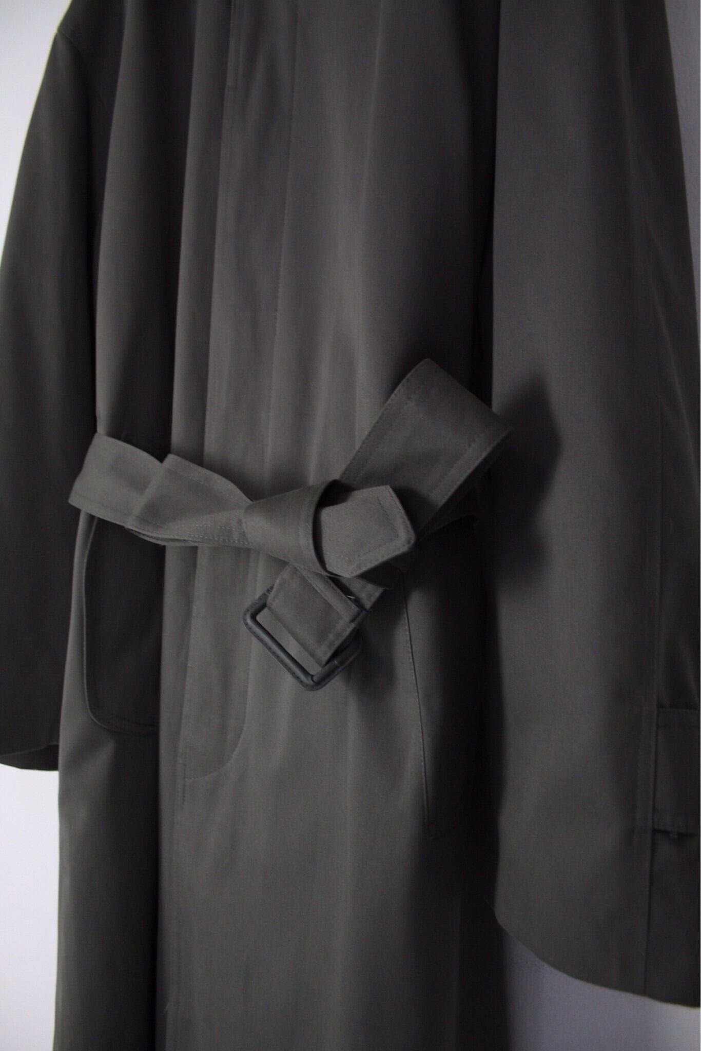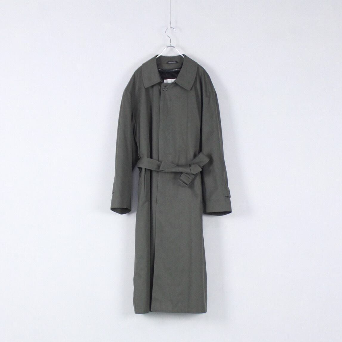オリーブグレーカラー スムース 着脱可ライナー付き ベルテッドロングステンカラーコート【FF-4668】