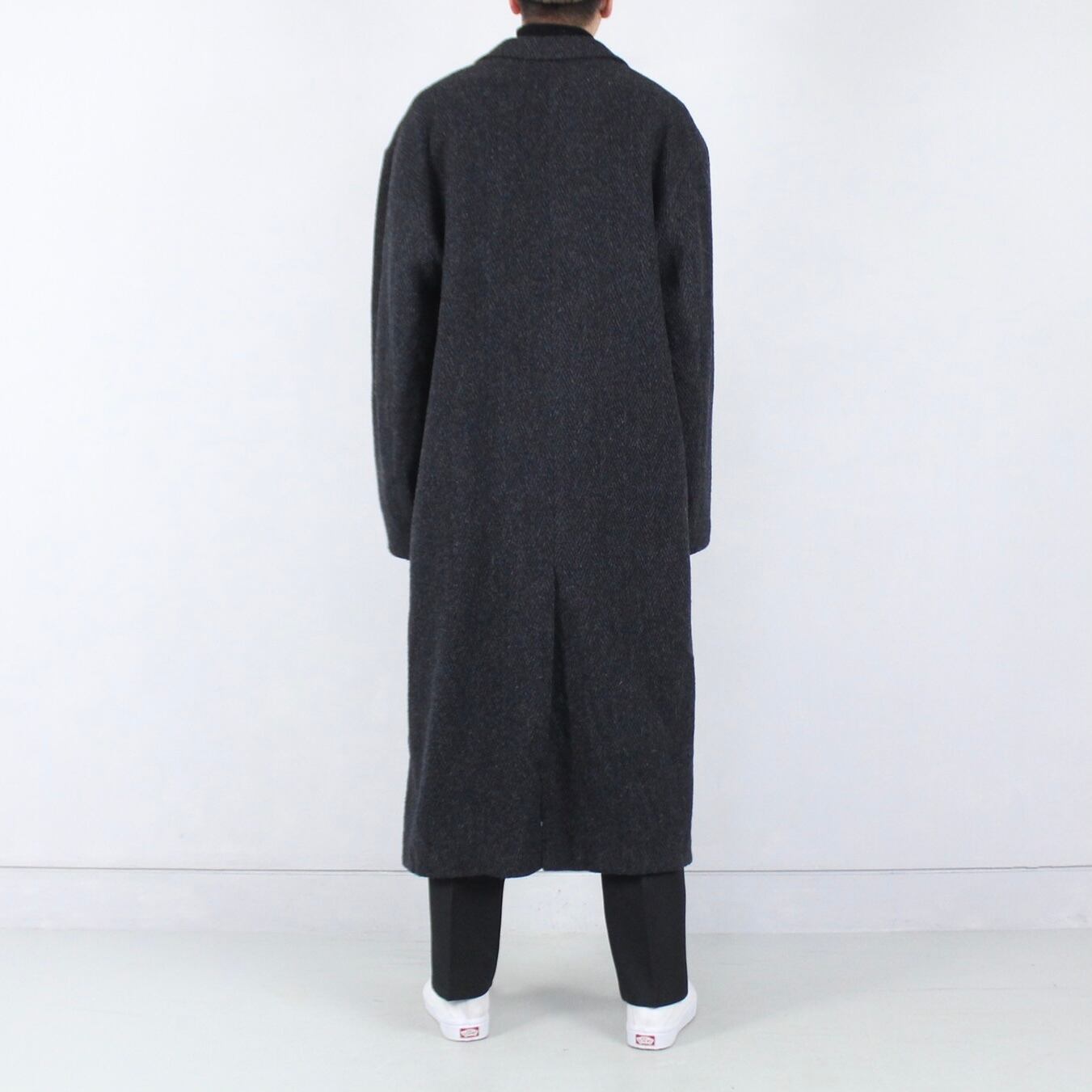 表記はMですが身幅もたっぷりとられ着丈は120cmを超えるほどのマキシ丈オーバーシルエット。ボリューミーかなシルエットからくる着用時の雰囲気は圧巻です。ツイード特有のドレープもしっかりと出ます