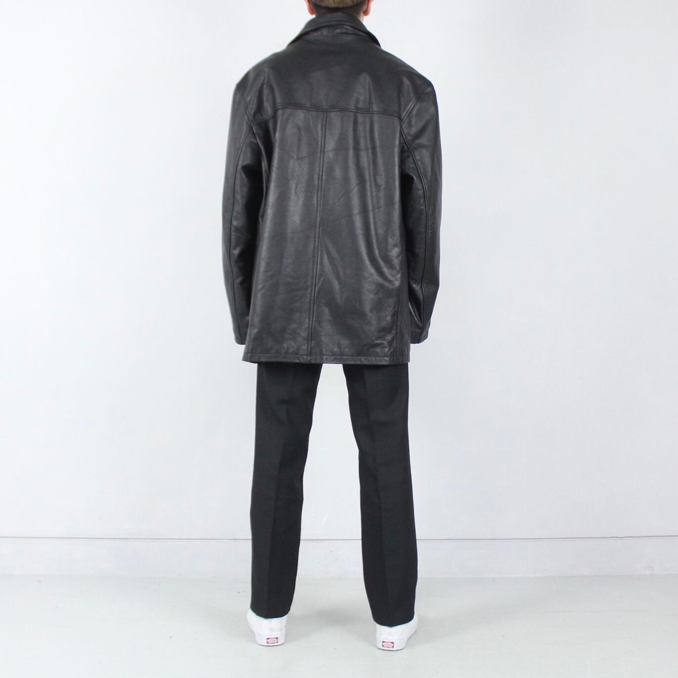 この手のレザーは古着で探すとなるとコンディションが悪いものが多く野暮ったいイメージですがこちらは綺麗めなスタイリングにも馴染むかと。