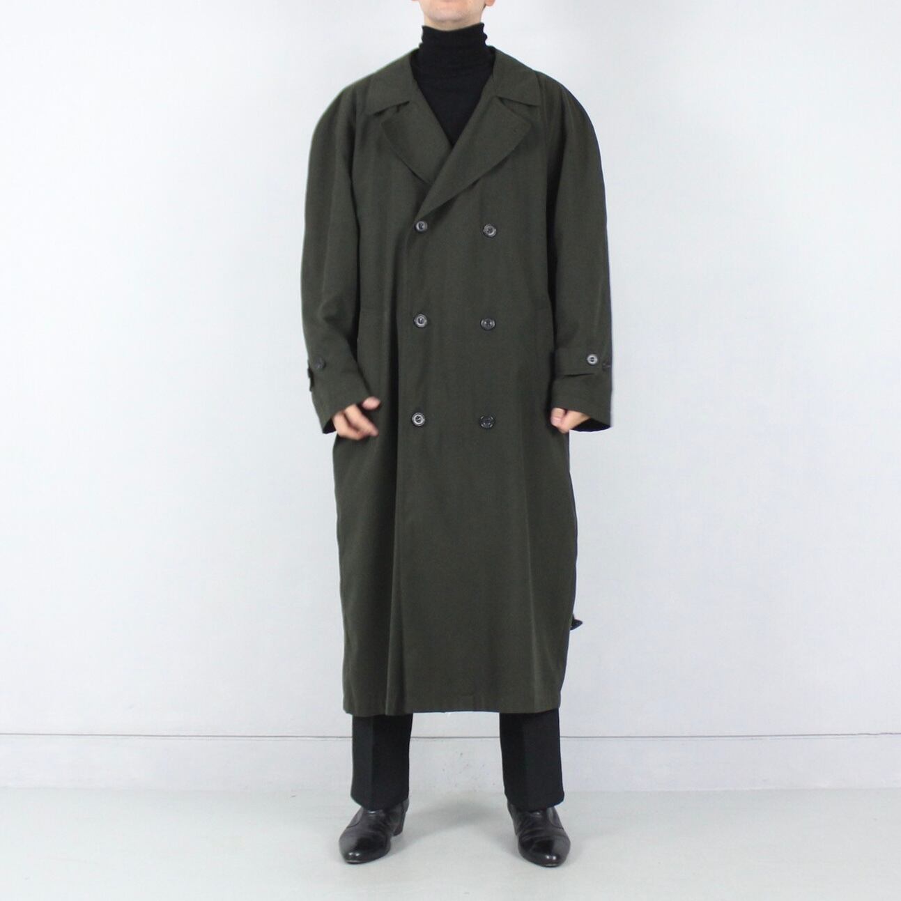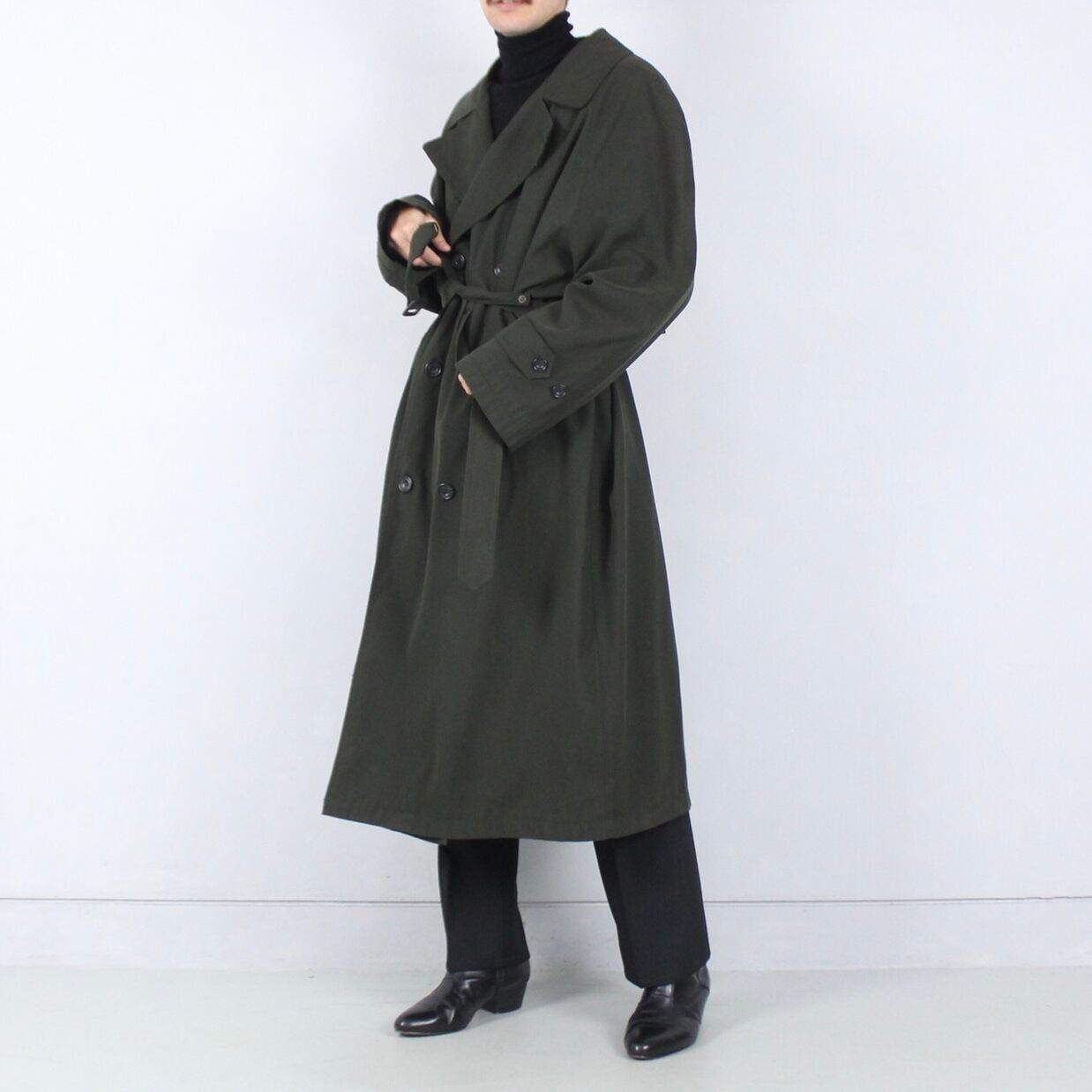 美シルエット◎ オリーブ スーパースムース ベルテッドロングトレンチコート 着脱可ライナー付【CO-1596】