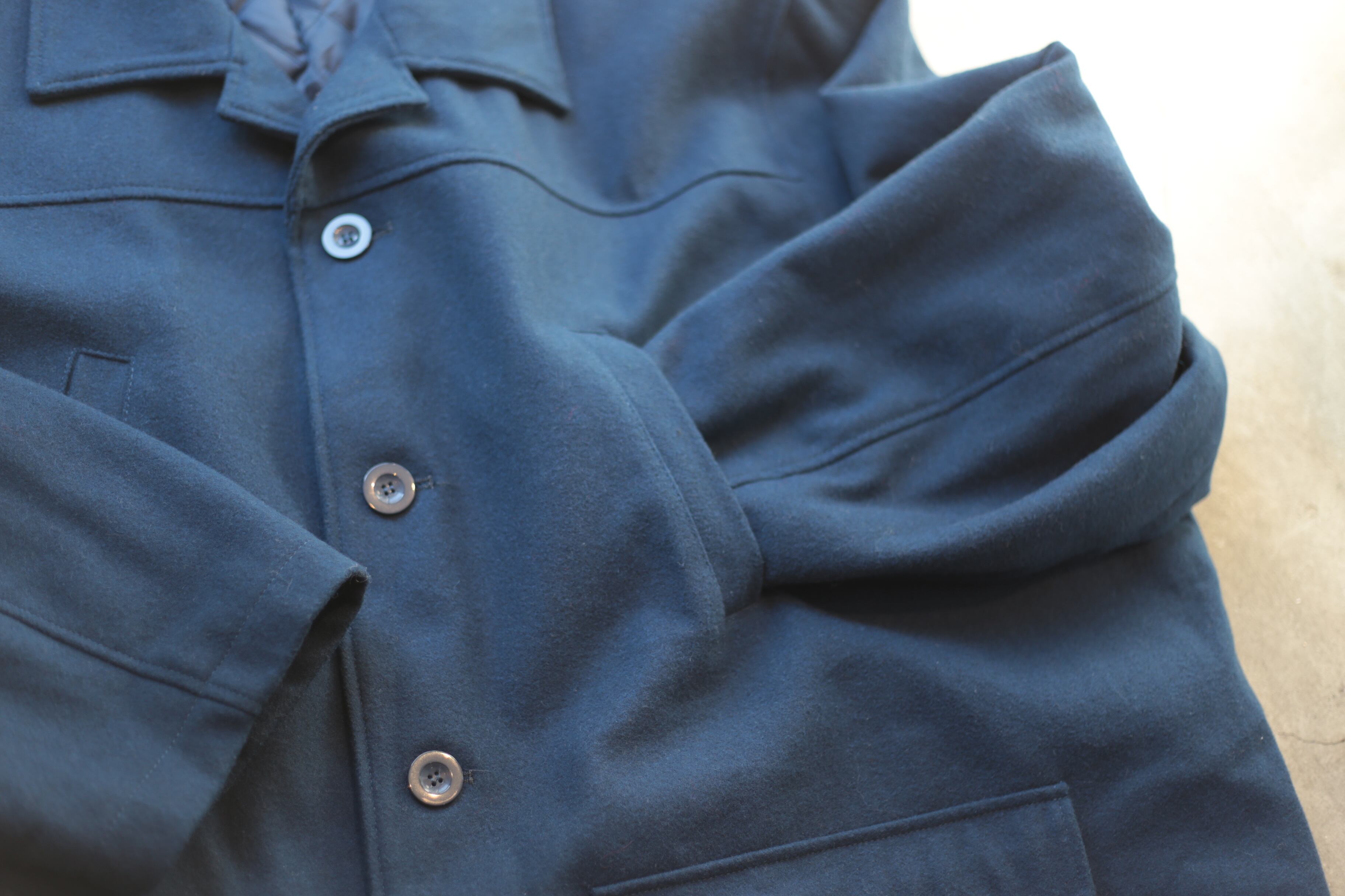 キルトライニングで暖かくウールの程よい滑らかさのあるファブリックでしっかりとオチ感も。