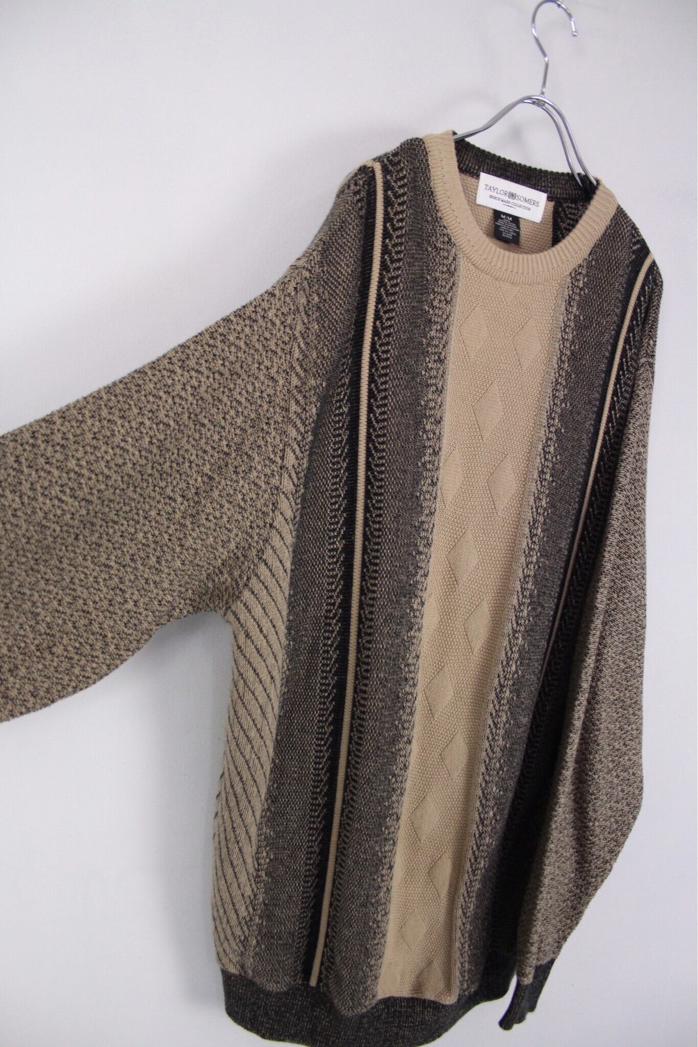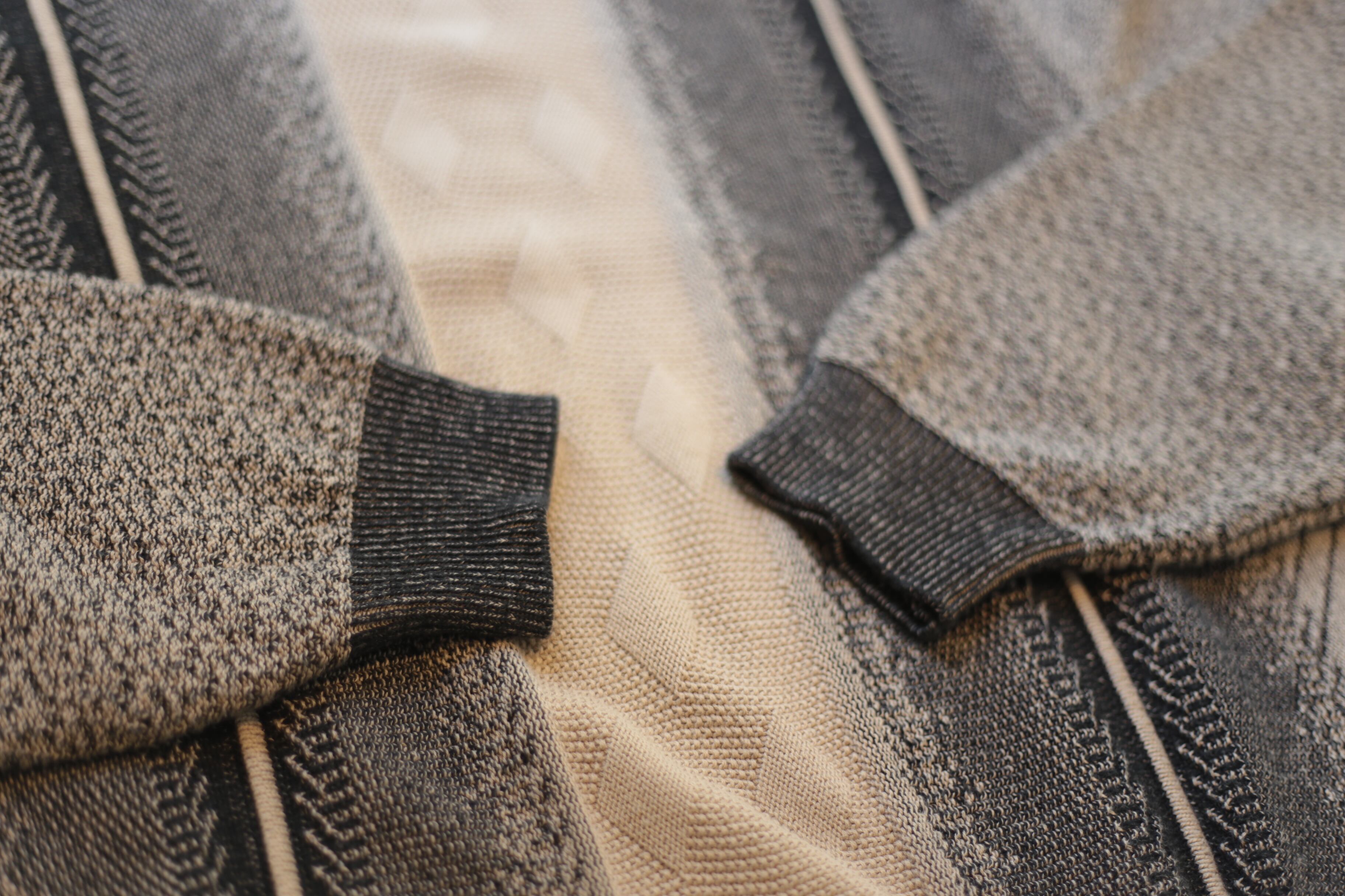 こういう切り替えのニットは編み方や裁縫しっかりこだわって作られているコストが非常にかかる1着で物価の低かった昔ならではのディテール。
