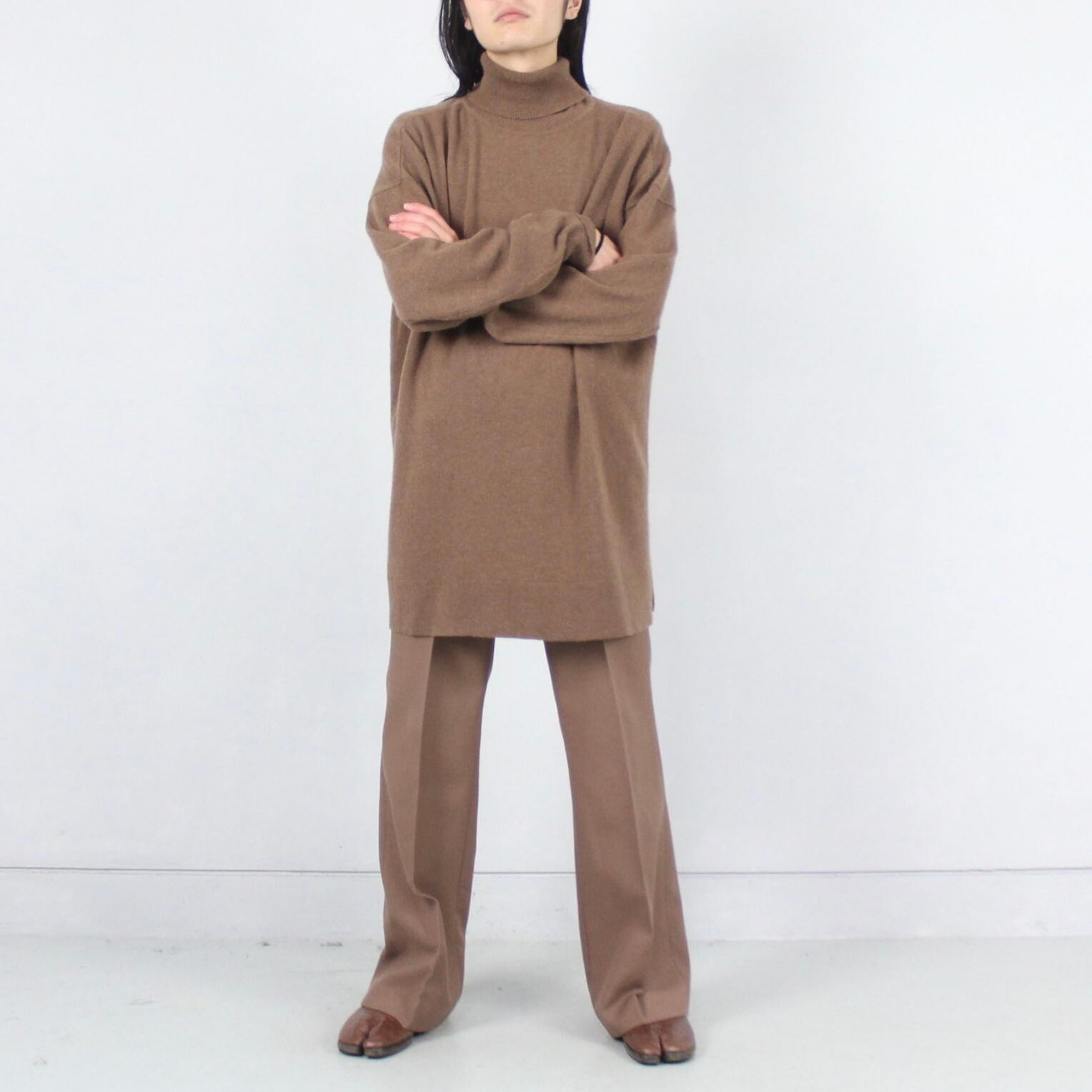 カシミヤ100% オーバーサイズ ドロップショルダー タートルネックニットセーター 【OT-3693】