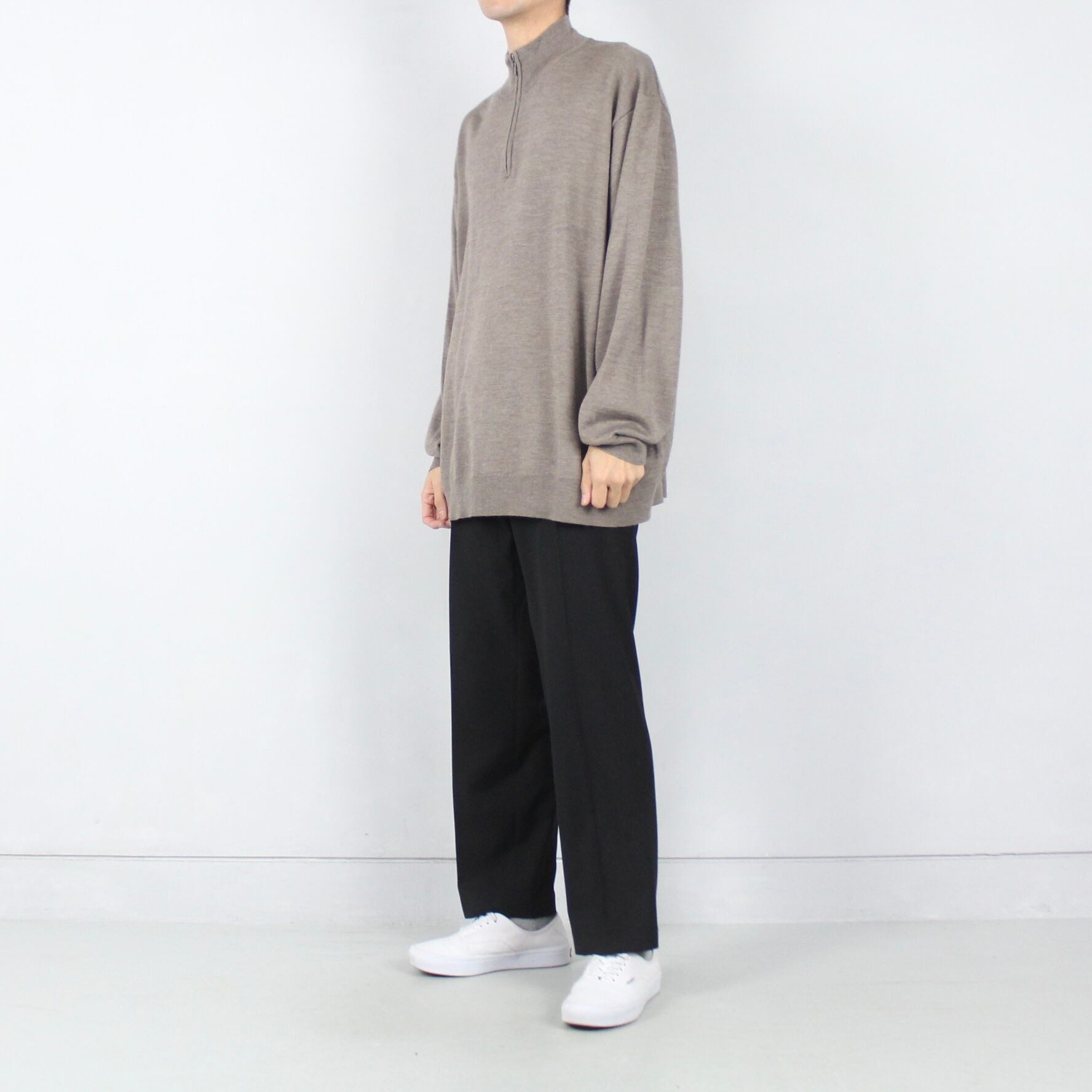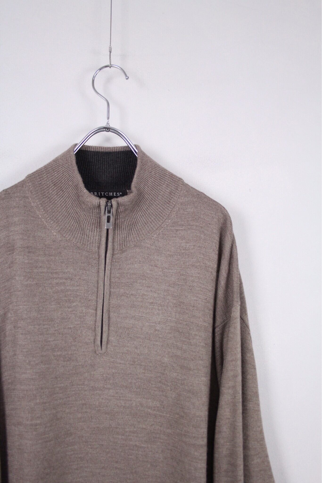 ブラウングレーカラー メリノウール混 ハーフジップニットセーター【FF-4715】