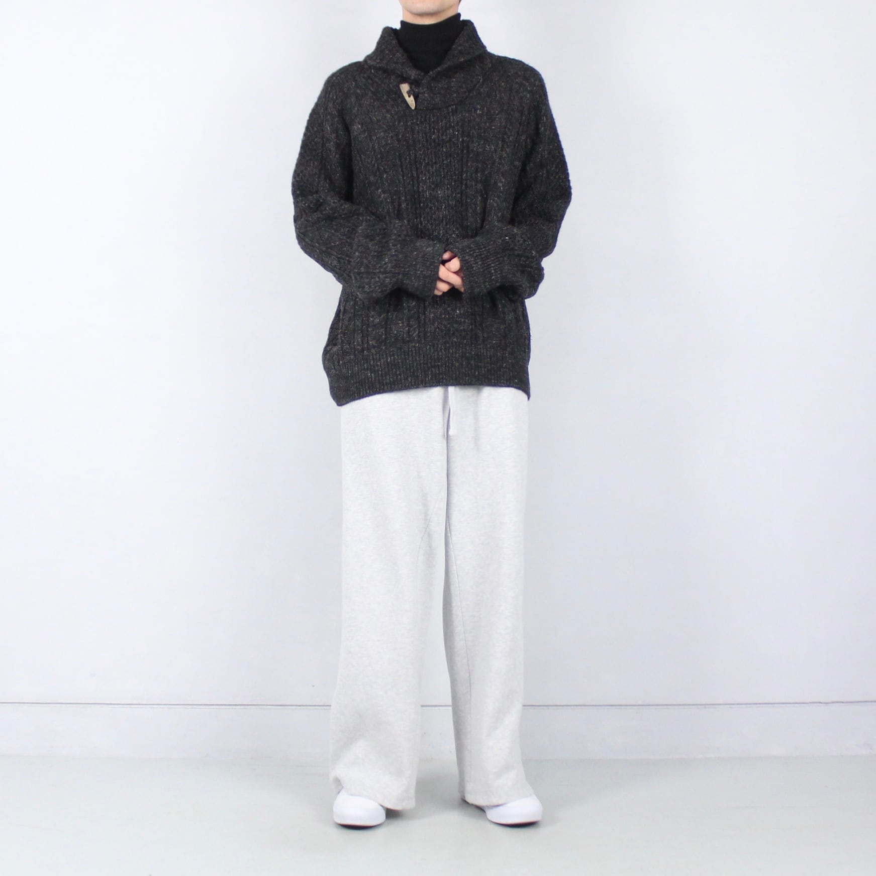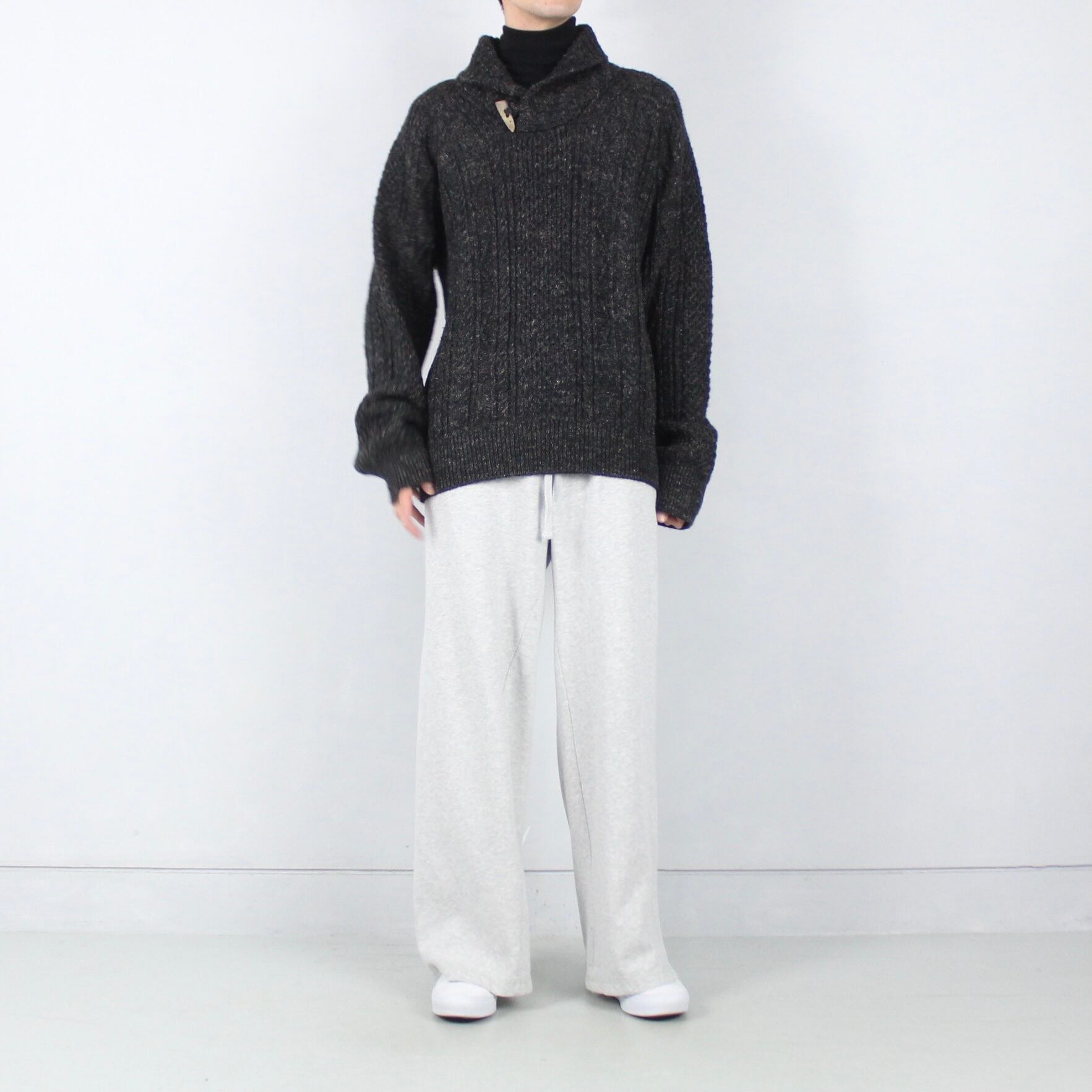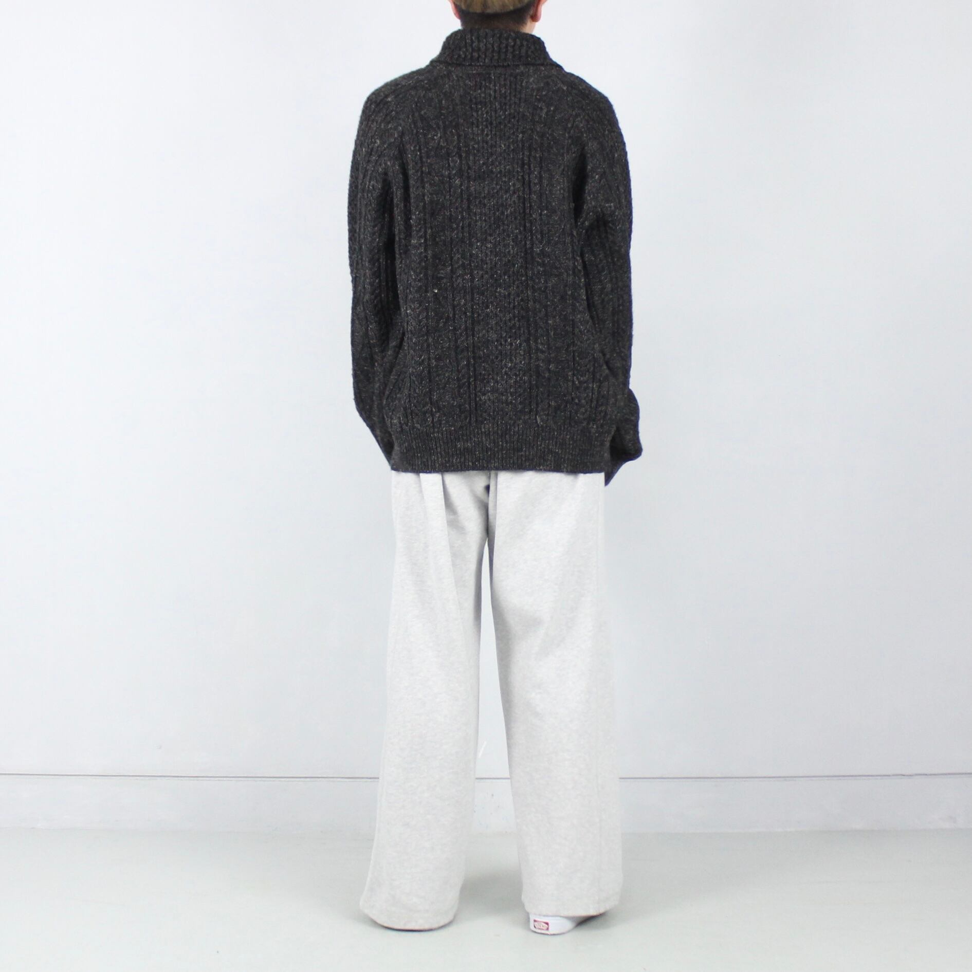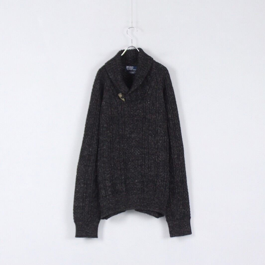 Polo by Ralph Lauren チャコールグレーmix ショールネック ケーブルニットセーター【FF-4723】