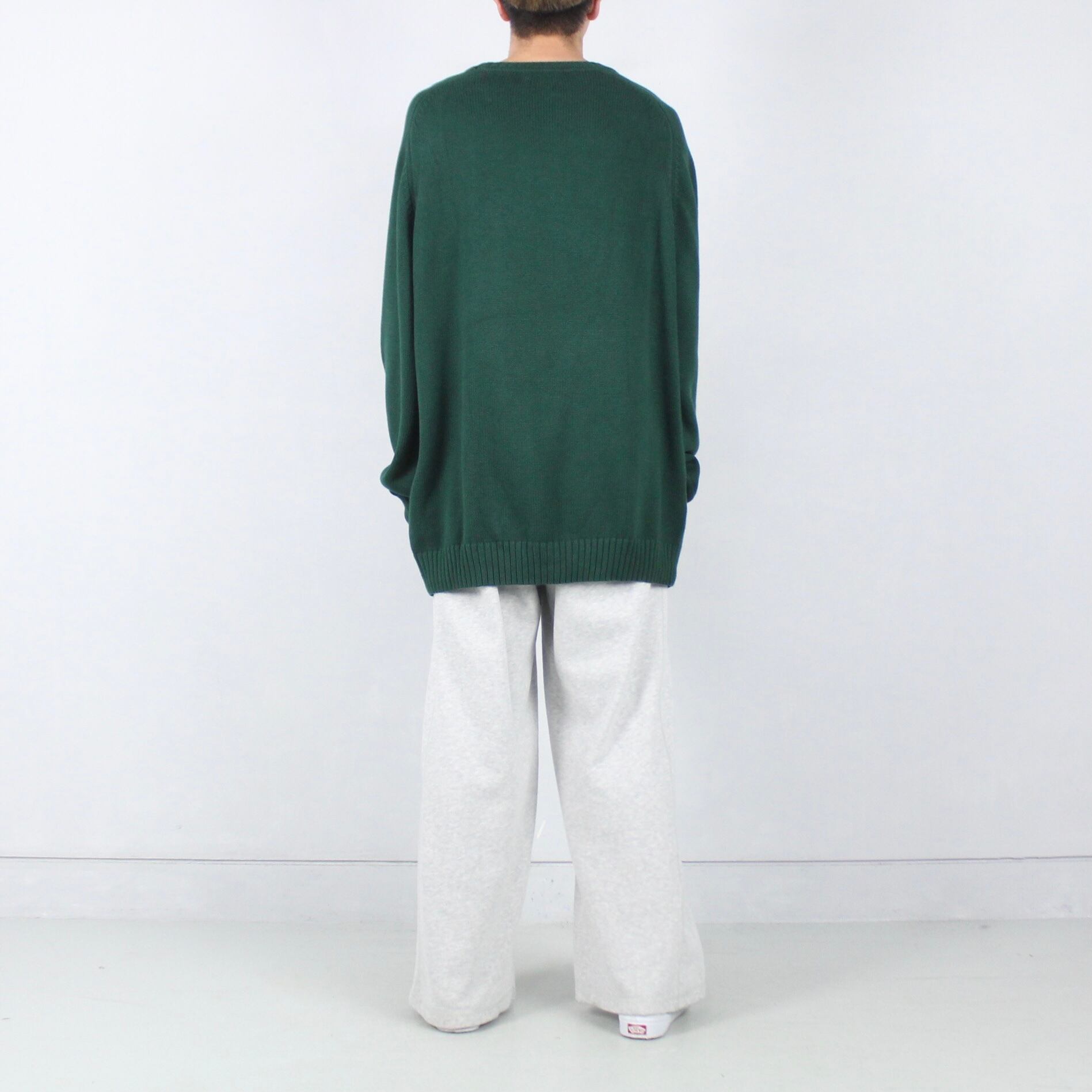 グリーンカラー コットン クルーネックニットセーター【FF-4728】