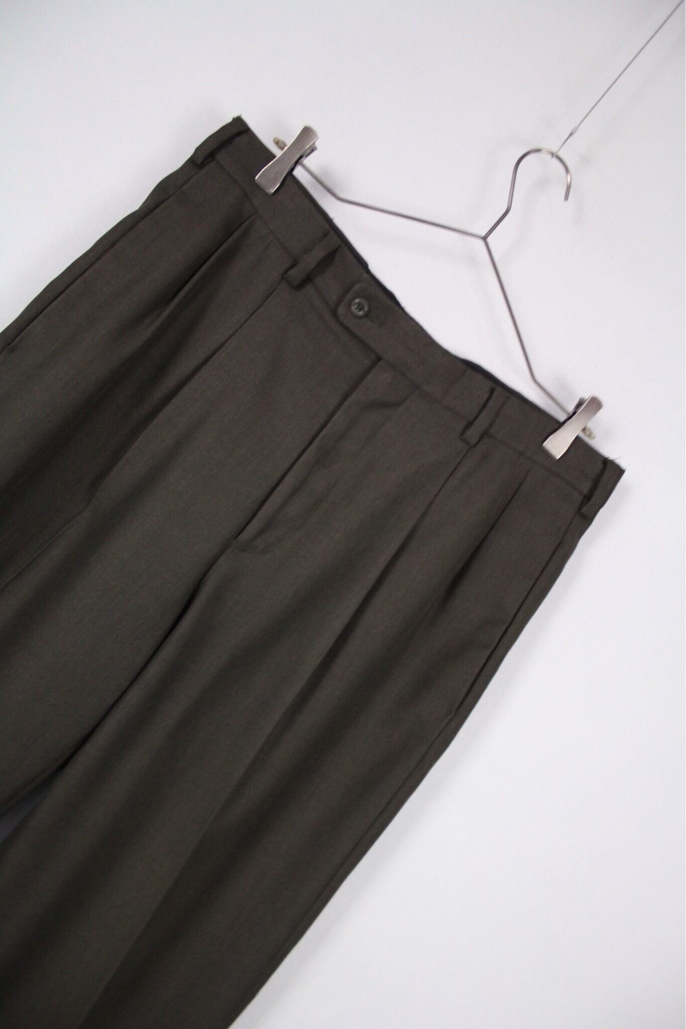 PERRY ELLIS ダークオリーブカラー とろみ 2タックワイドスラックス【FF-4751】