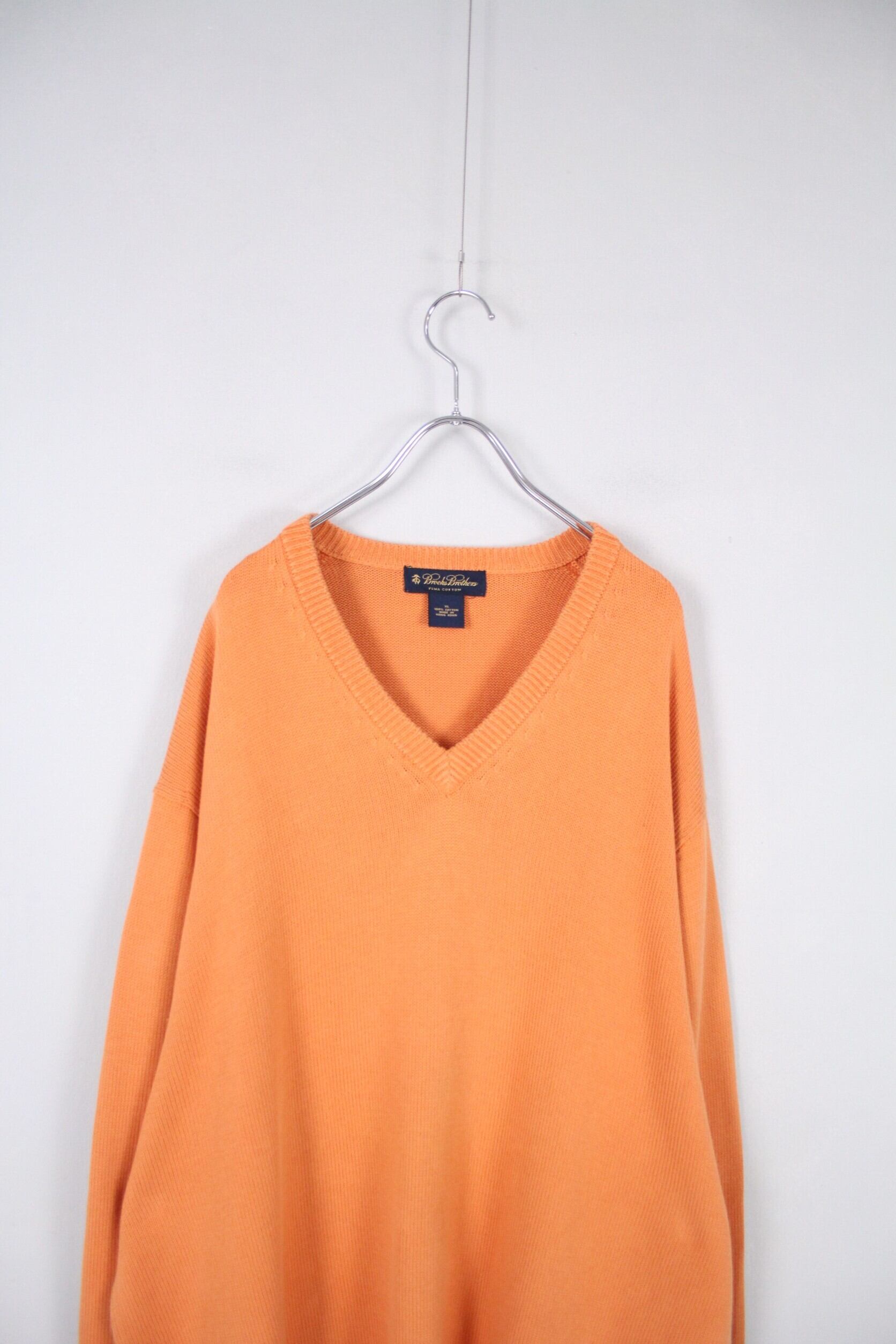 Brooks Brothers オーバーサイズ コットン Vネックニットセーター オレンジ 【OT-3713】