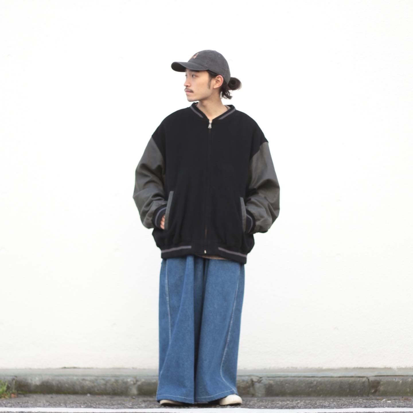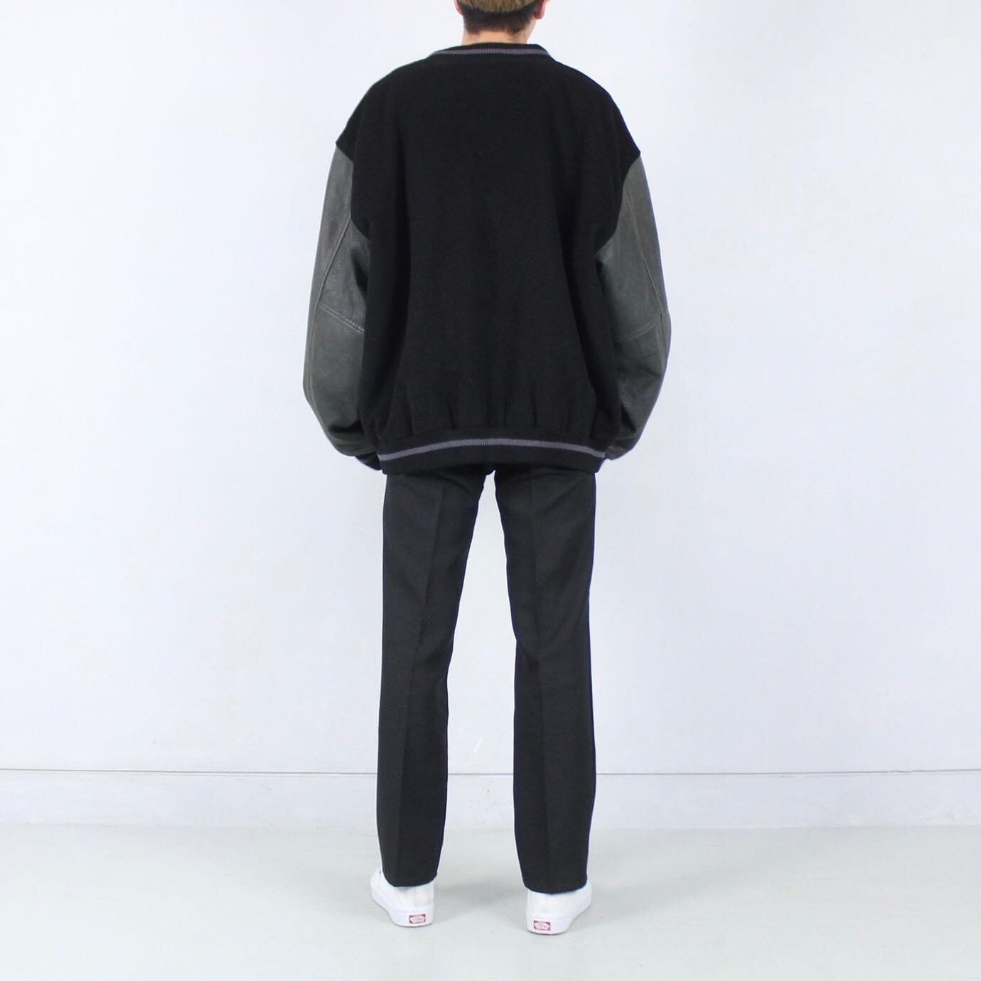 ウール×レザー 好配色◎ オーバーサイズ スタジアムジャケット【FF-4760】