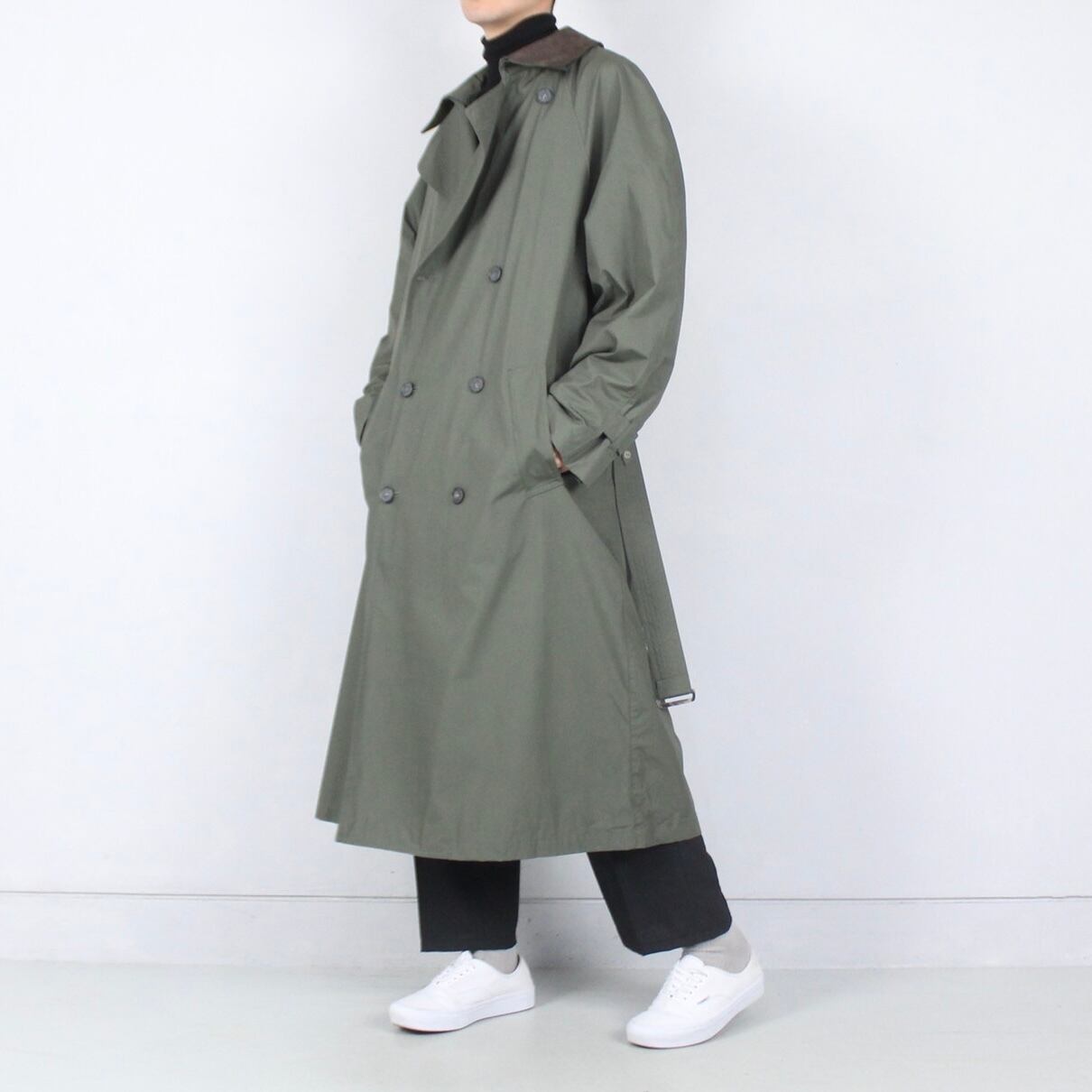 トレンチでエポレットが付かないので肩の張り具合も気にせず落ち感を存分に楽しんでいただけます。襟切替の珍しいディテールも魅力的ですね。もちろん着脱可能です◎