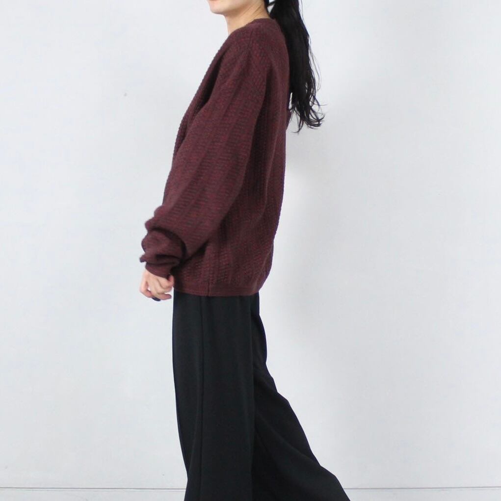 凹凸ある生地感は1枚で存在感を感じさせますね。デイリーユースに使い勝手のいいニットです。