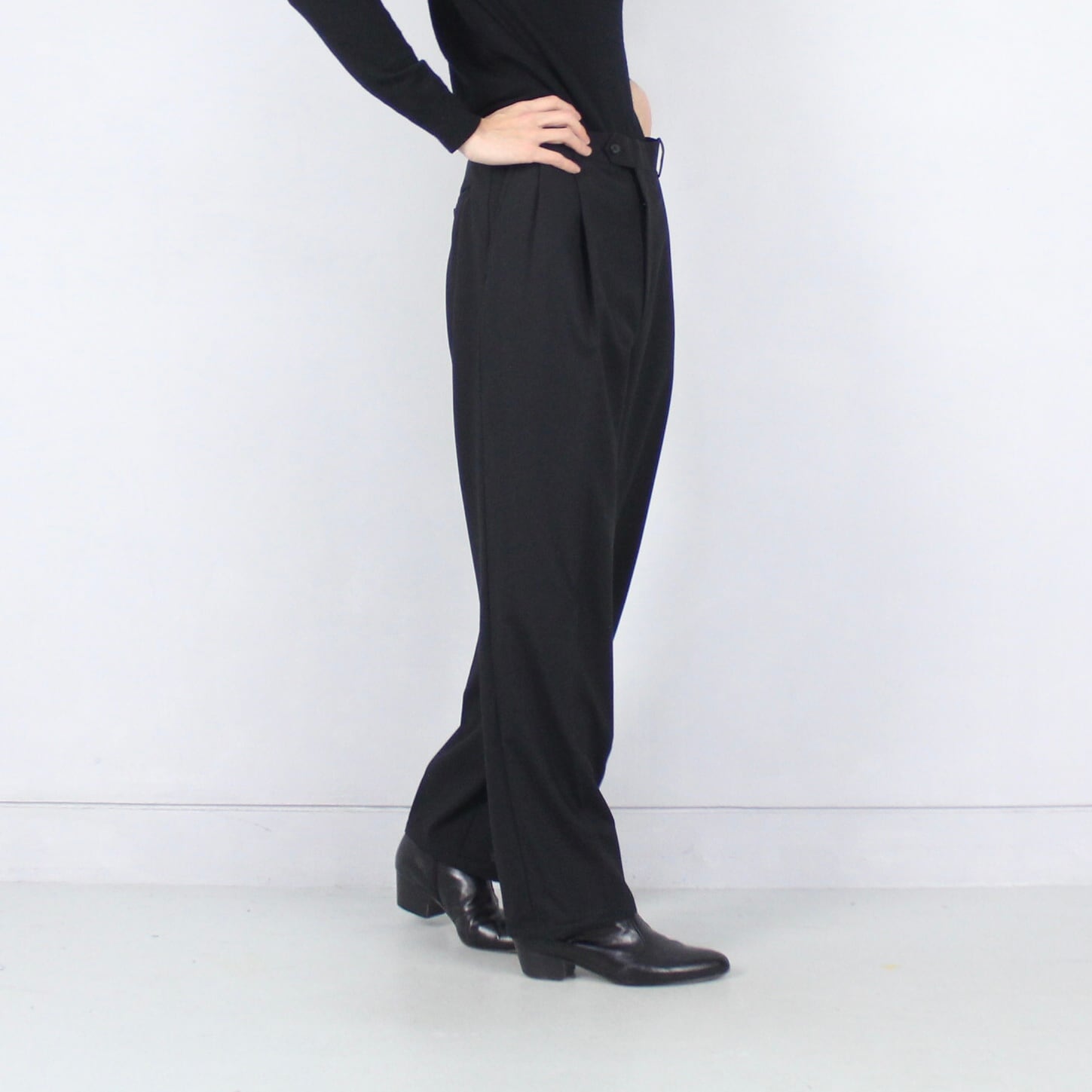 とろみウール オールブラック 2タックセミワイドスラックス【CO-1689】