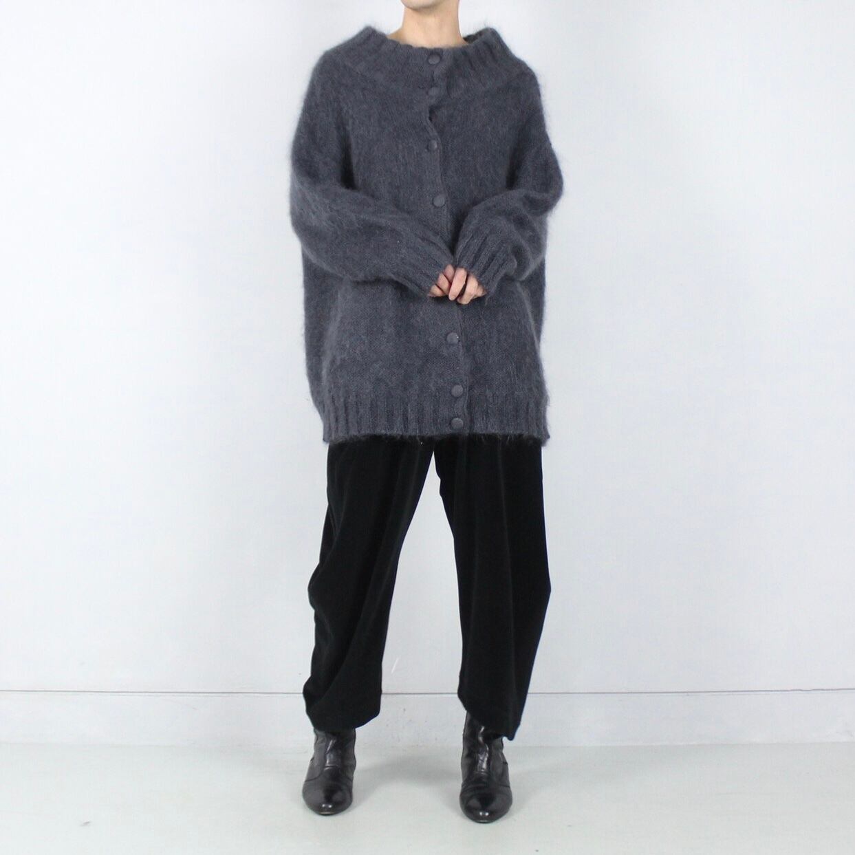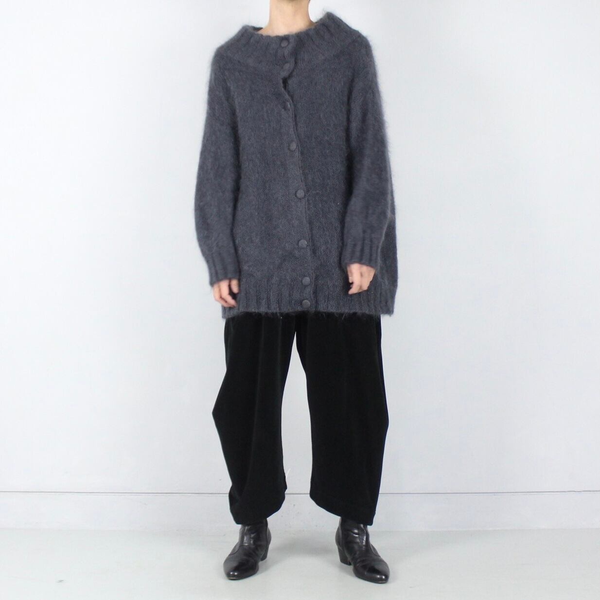vintage グレーロングモヘア オーバーサイズ ハイネックニットカーディガン【CO-1725】