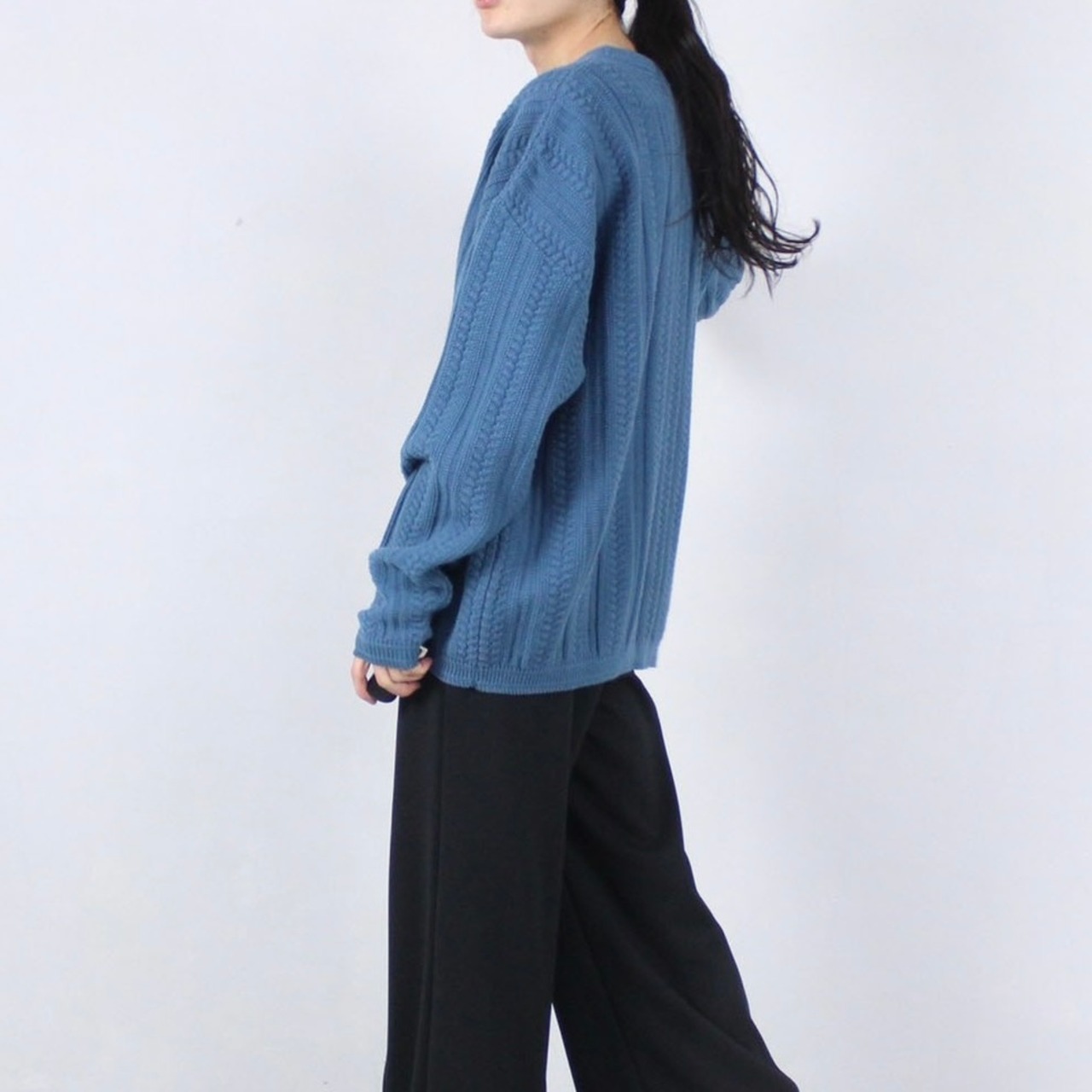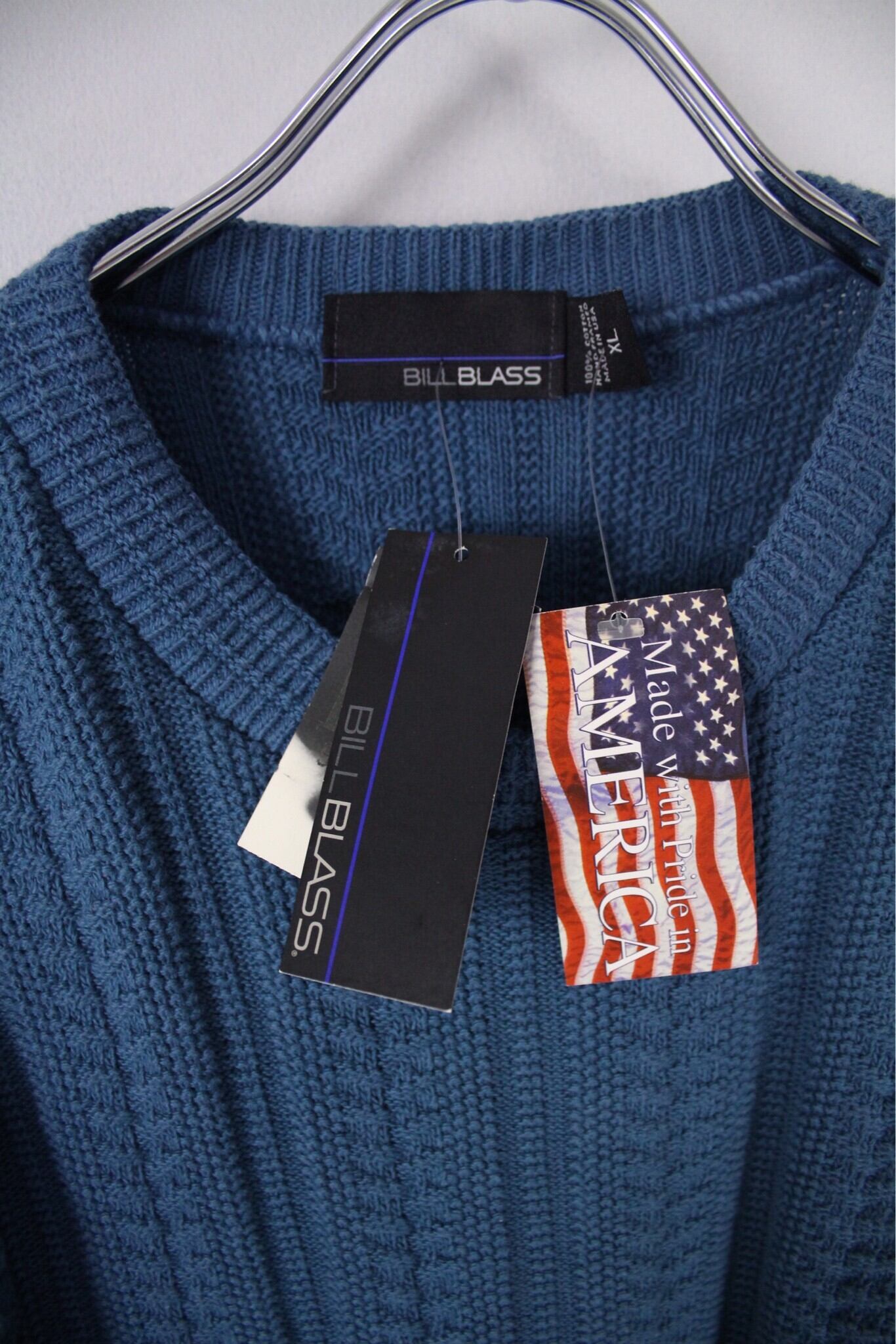 Deadstock スモークブルー 単色 3D コットンニットセーター【FF-4879】