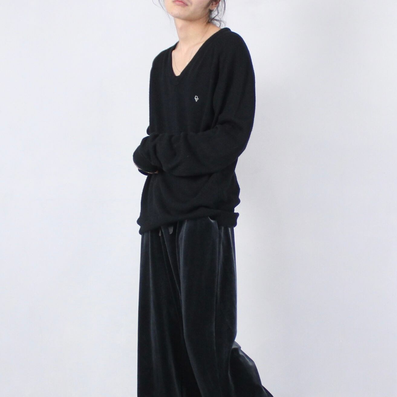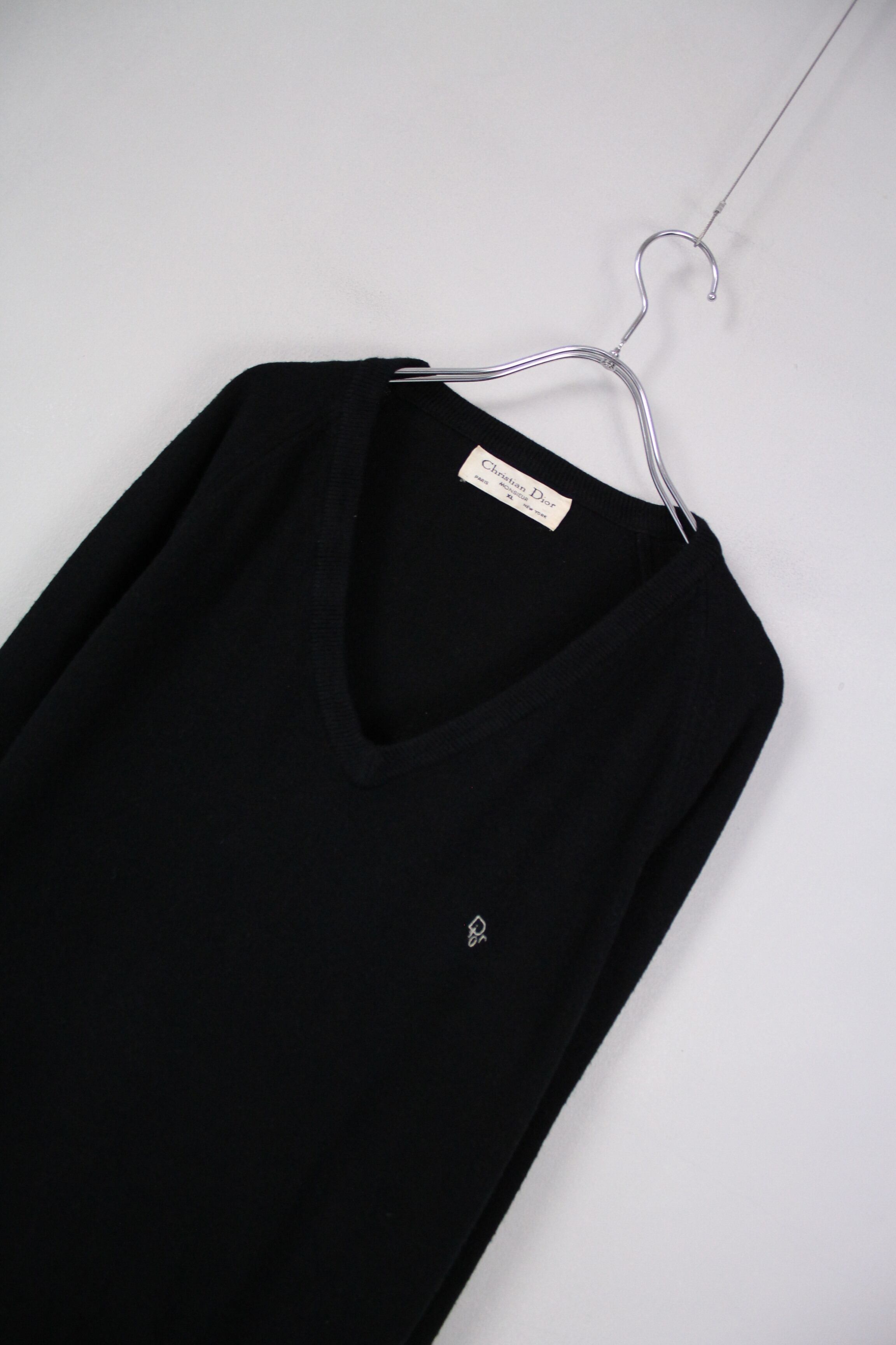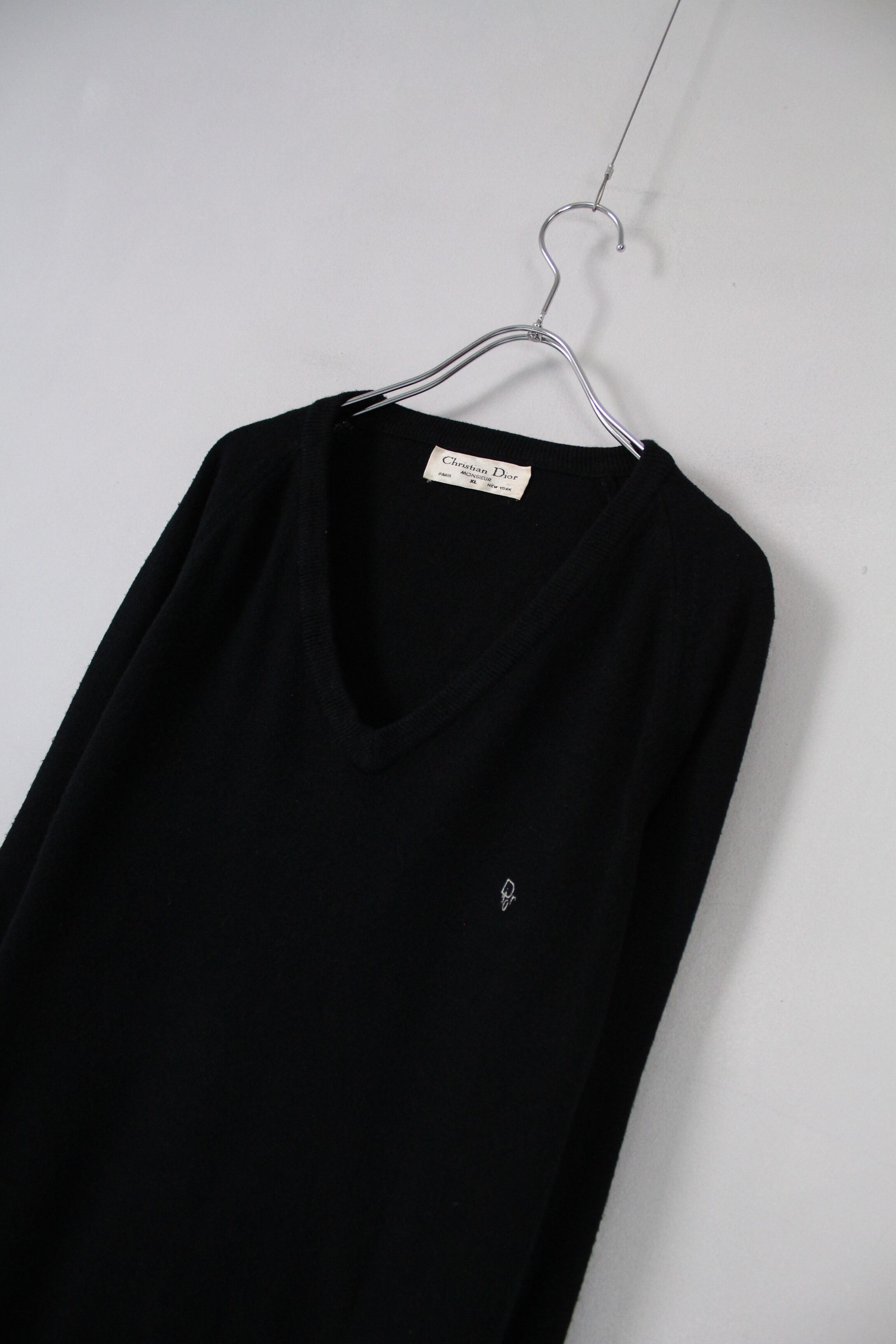 1980's~ Christian Dior Vネックニット XL ブラック 【OT-3816】