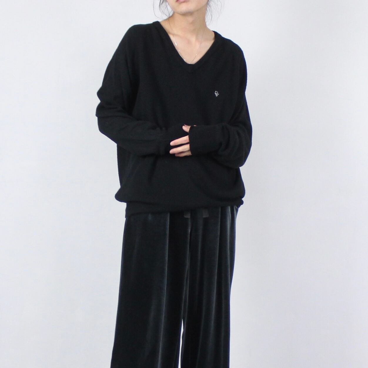 Vネックが印象的で