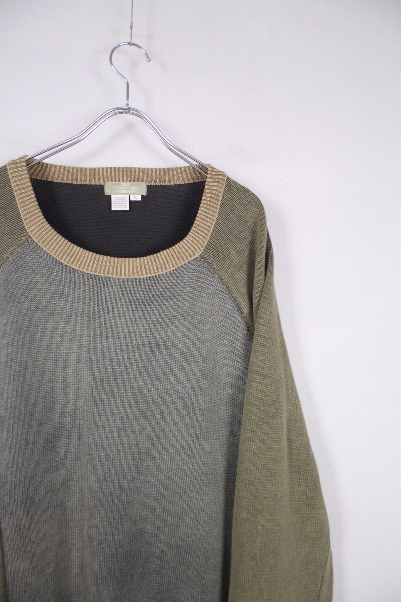 レーヨン混のとろみある薄手ボディは褪せた印象もありニットなのにスウェットのような味がある不思議な1着。