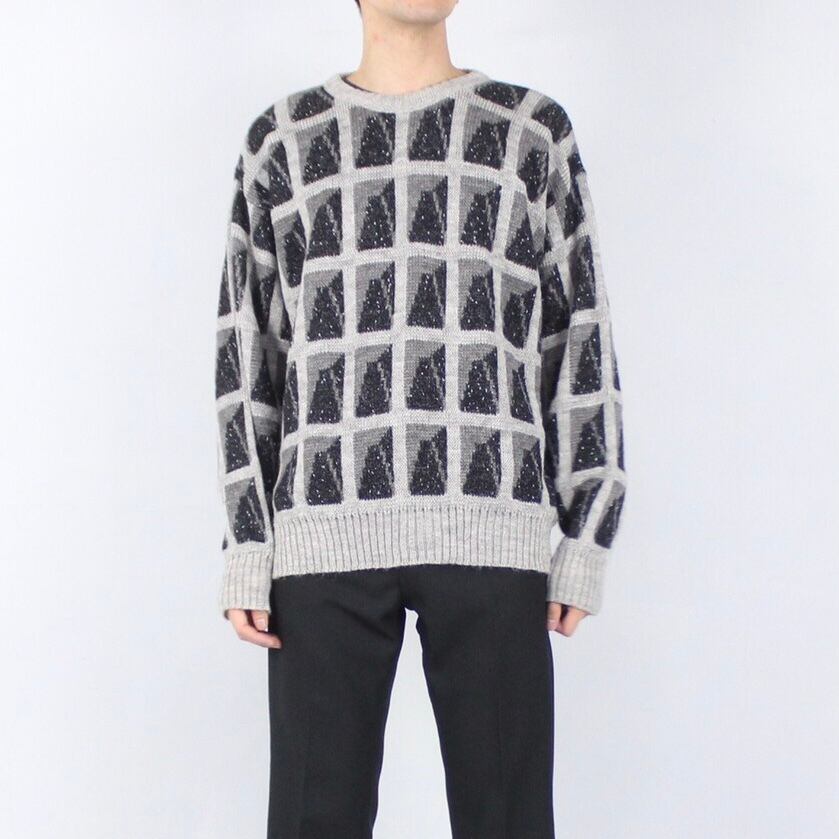 LANVIN モヘヤ × アルパカ mix 総柄ニットセーター Made In ITALY【CO-1763】