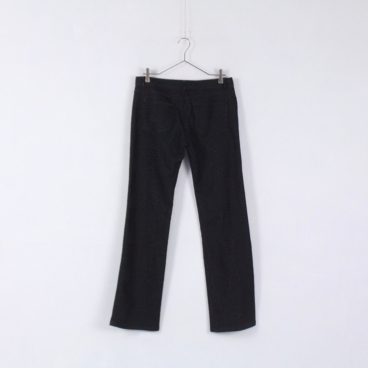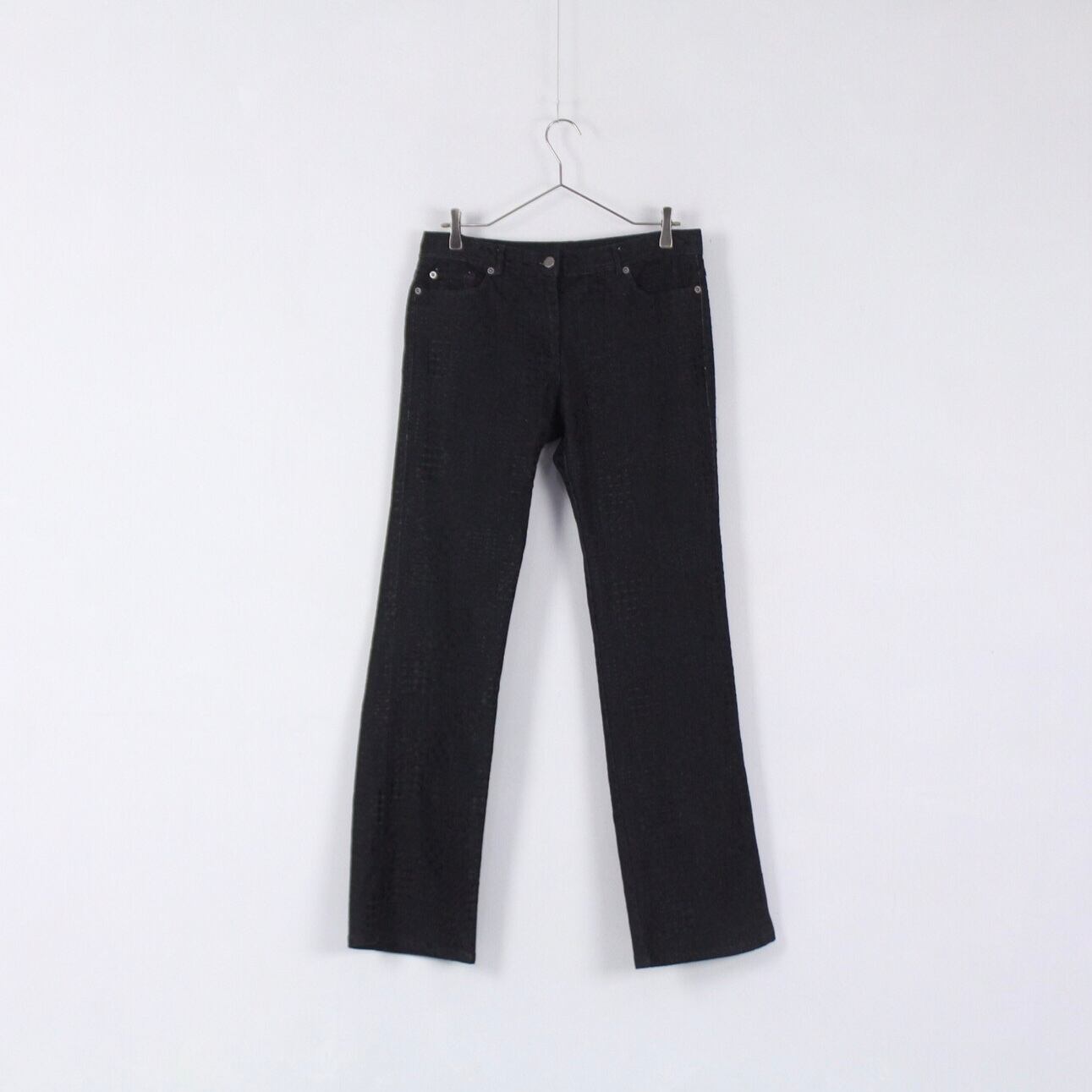 同色刺繍総柄デザイン ブラックフレアパンツ Made In USA【CO-1770】