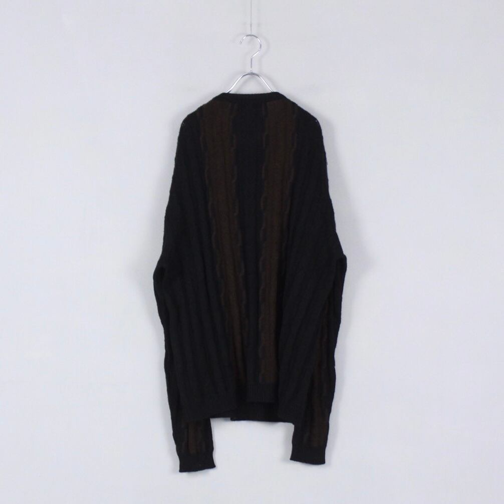 オーバーサイズ ブラウン×ブラック バイカラー ケーブルニットセーター【FF-4923】