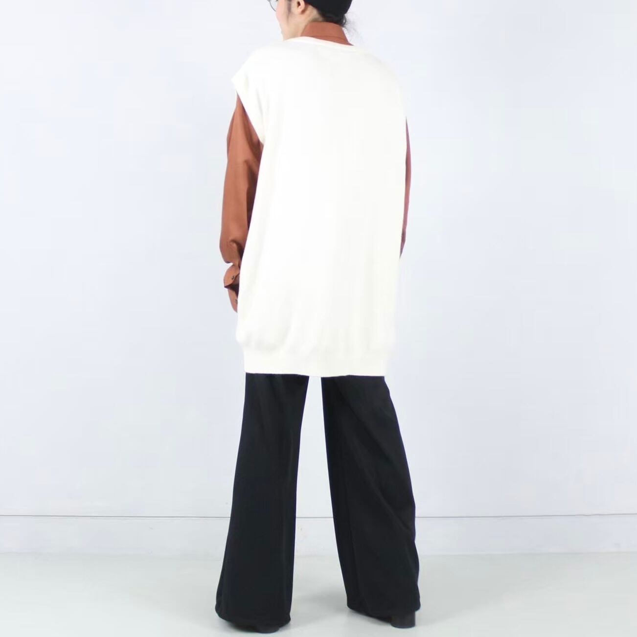 ニットベスト自体小さめがほとんどとなりますが、ここまで大きいと逆にオシャレかなと思います。