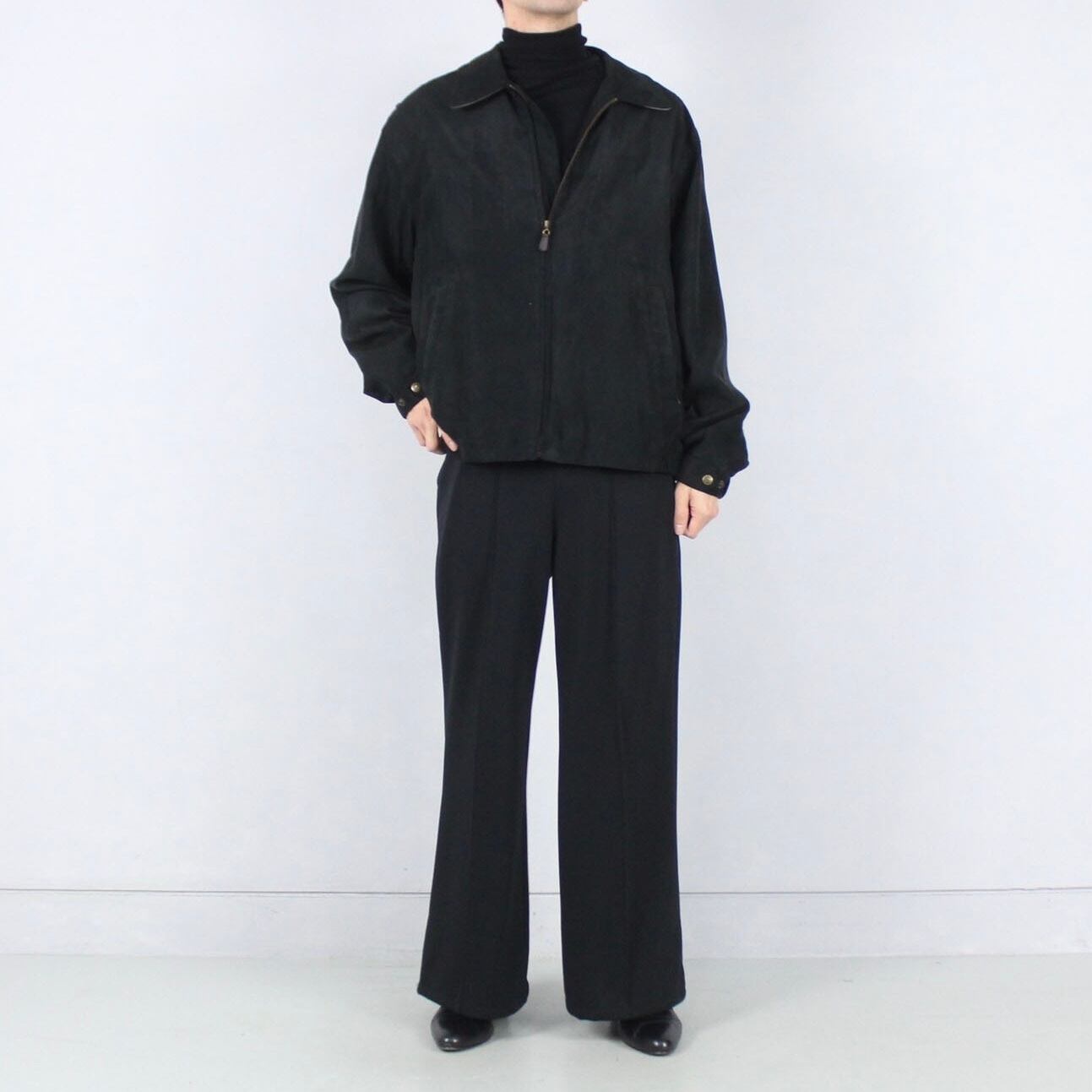ブラック アクションプリーツ フェイクスエード スイングトップブルゾン【CO-1799】