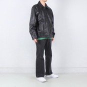 モチモチ 中綿入り ジップアップ ブラックレザージャケット【FF-5000】