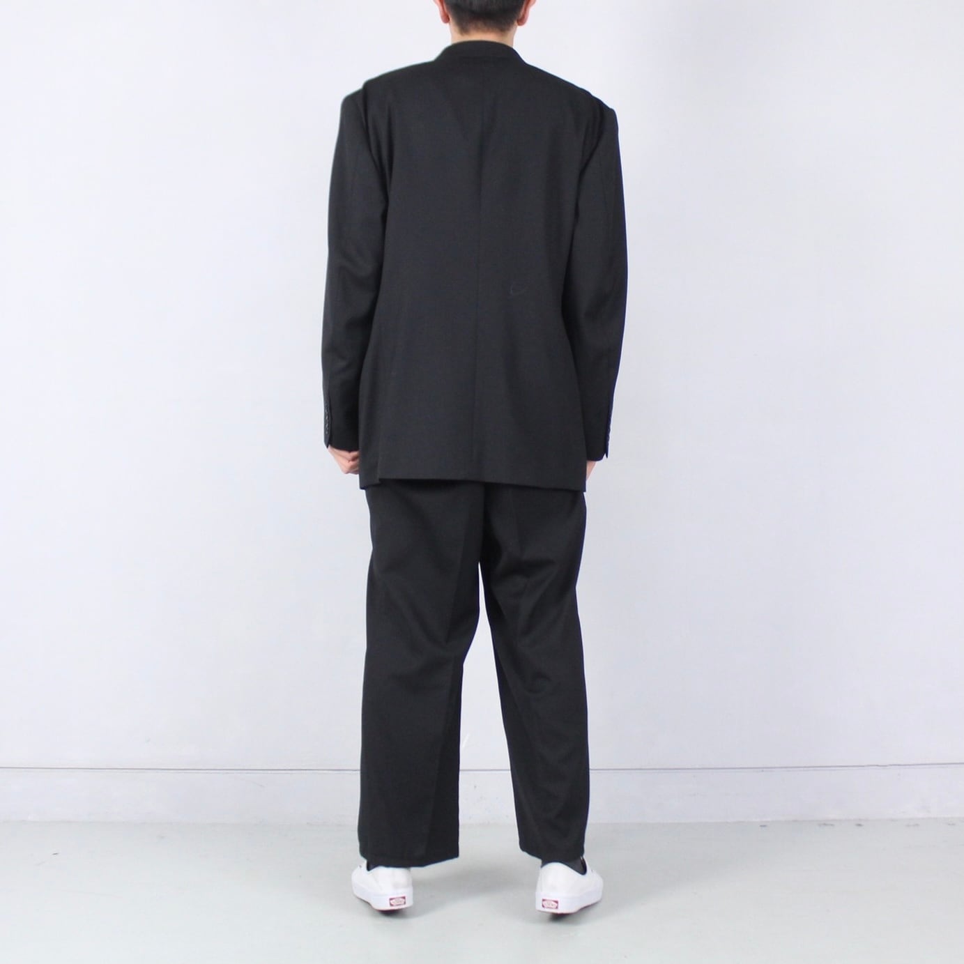クラシカルなダブル仕様ながらも肩パッド等は排除し全体的にゆったりとしたシルエットでセレクト。古臭さを感じさせない現代に馴染むテーラーセットアップとなります