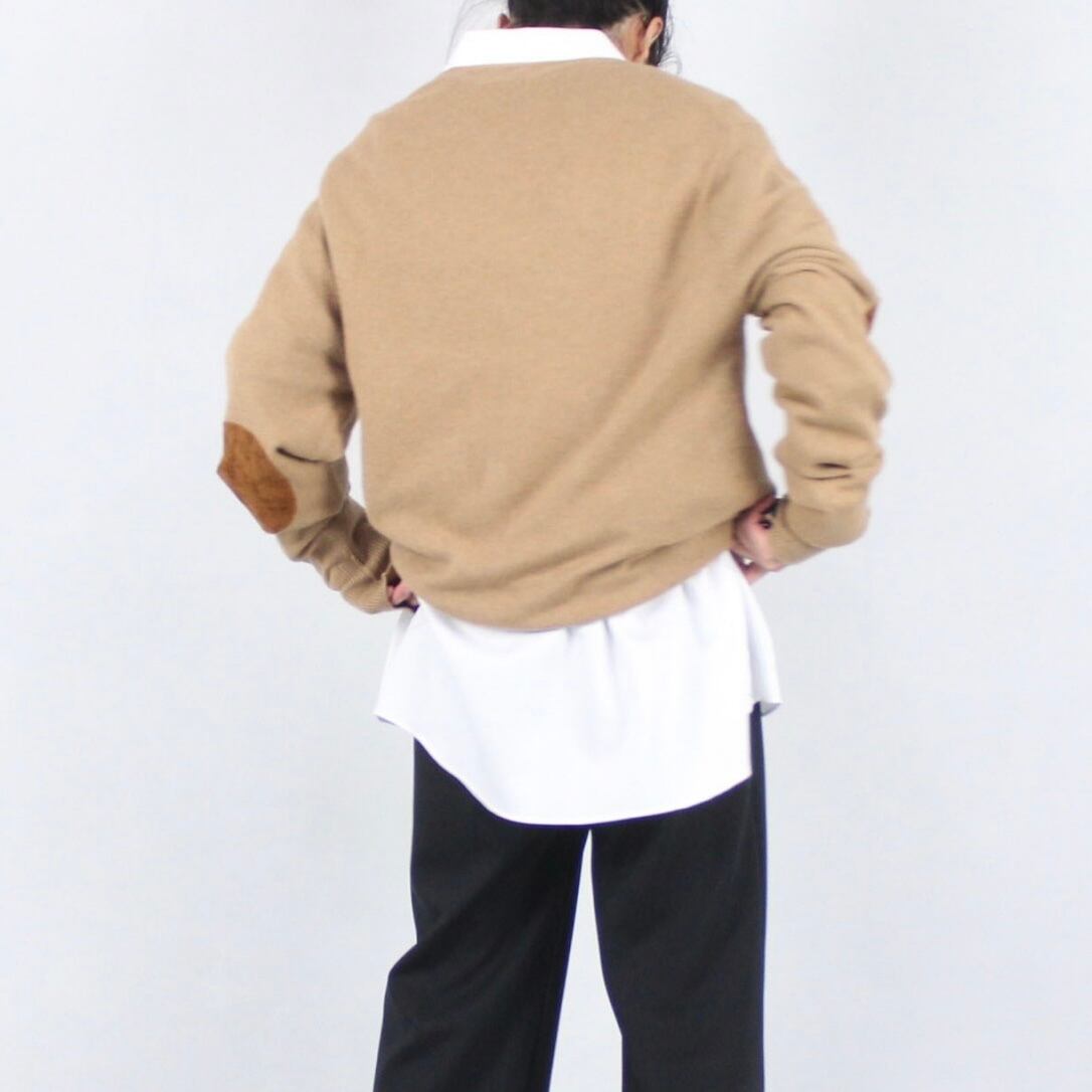 VINTAGE カシミヤ100% エルボーパッチ クルーネックニットセーター 【OT-3915】
